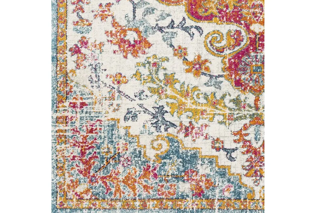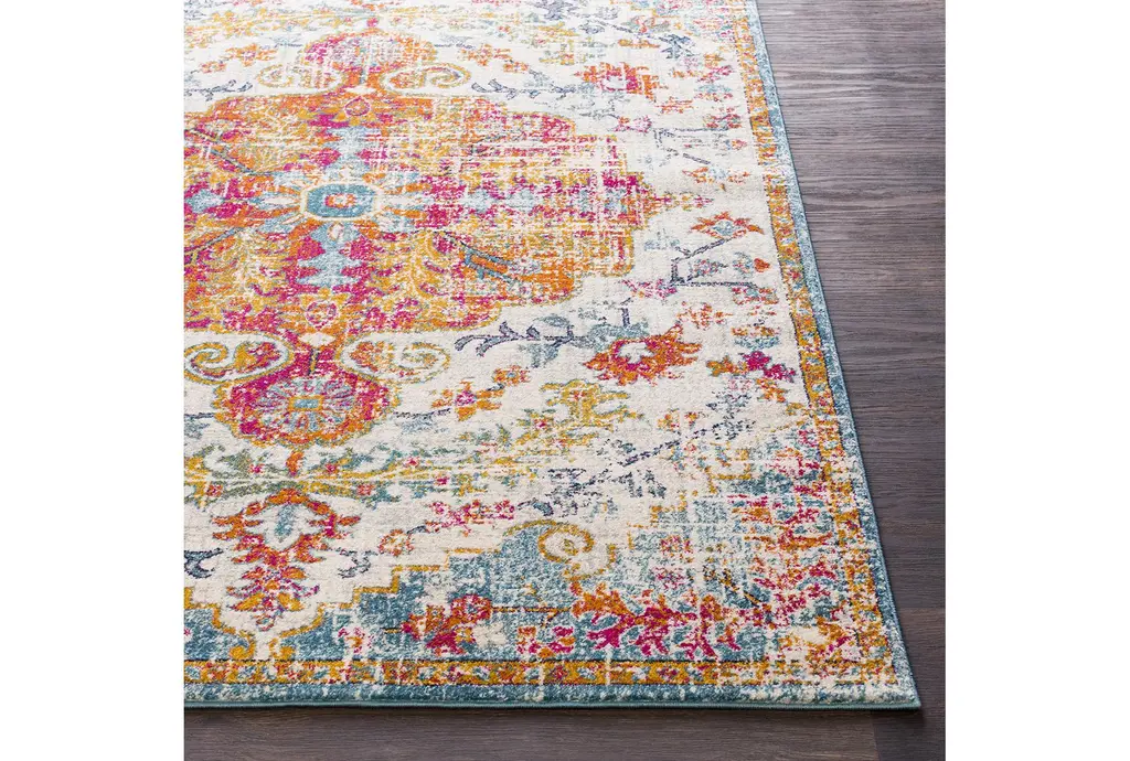 Enhance your hallway with the Surya Fiber Rug that features a traditional multicolor design. This low pile rug boasts vibrant colors including beige, saffron, light grey, teal, burnt orange, garnet, and dark blue, making it a standout piece in any indoor space. Made from 100% polypropylene, this rectangular runner ensures durability and comfort underfoot.