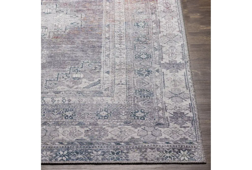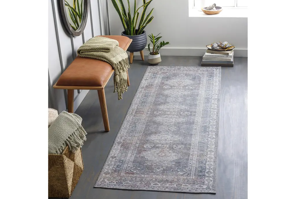 Enhance your indoor space with the Colbourn Traditional Runner Rug by Surya. This 2'7"x10' rug features a classic design in soothing shades of charcoal, grey, light grey, brown, and cream. Made from a blend of chenille-polyester and cotton, this machine-washable rug provides durability and ease of maintenance.