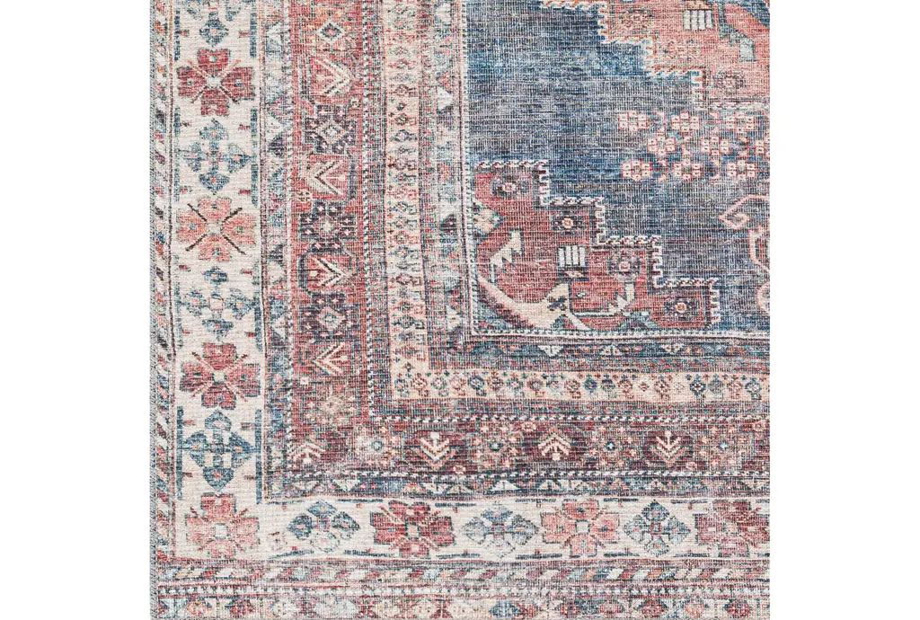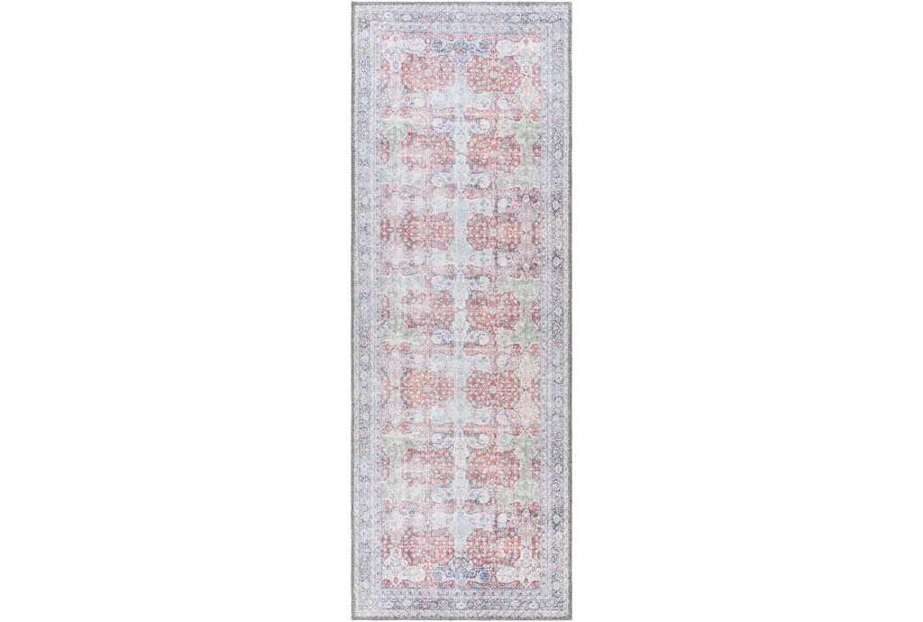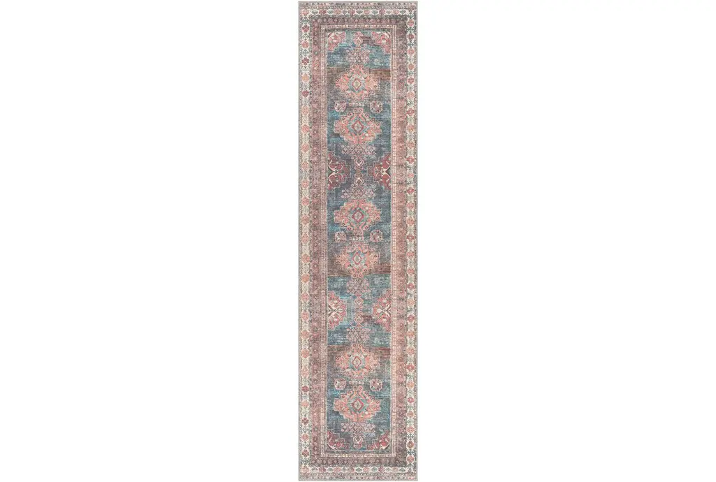 2'7"x12' Runner Rug-Colbourn Traditional Machine Washable Fabric Blue/dusty Coral | Uv Resistant | Performance | Long | Rectangle By Surya