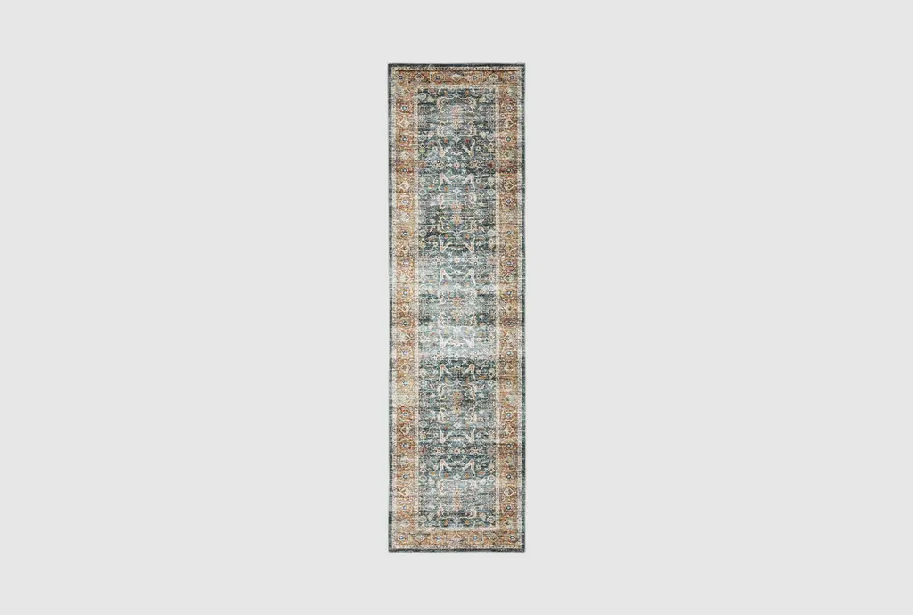 This beautiful rug features a traditional style and measures 2'7"x12'. It is made of durable fabric and is machine washable, making it a practical and stylish addition to any home.