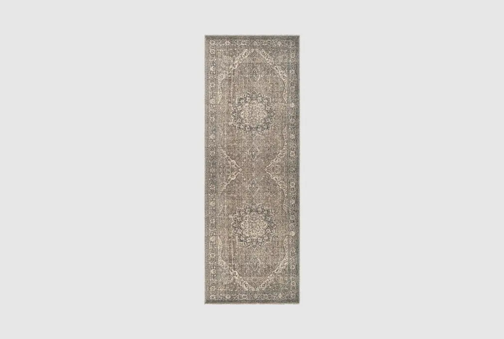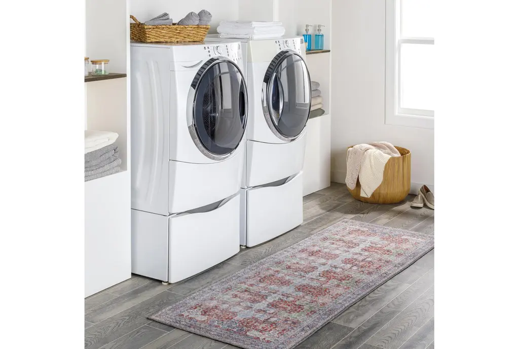 This 2'7"x7'3" Aleah machine washable rug in rust and blush is the perfect addition to any kitchen. Its traditional style and fabric material make it both beautiful and practical.