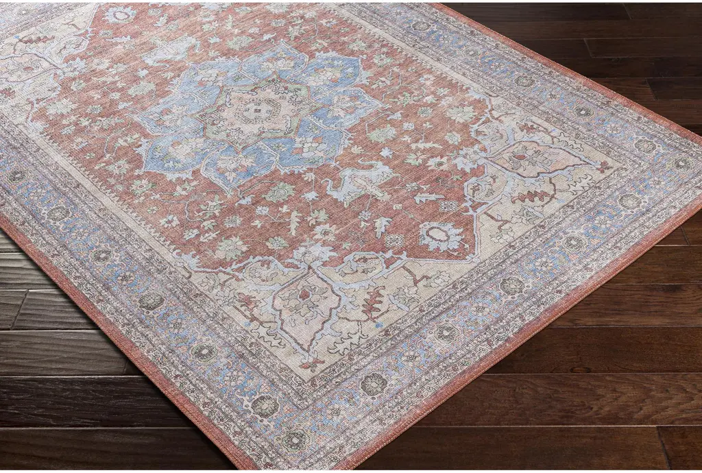 2'7"x7'3" Runner Rug-Aleah Traditional Fabric Machine Washable Brown/blue | Uv Resistant | Rectangle | Performance By Surya