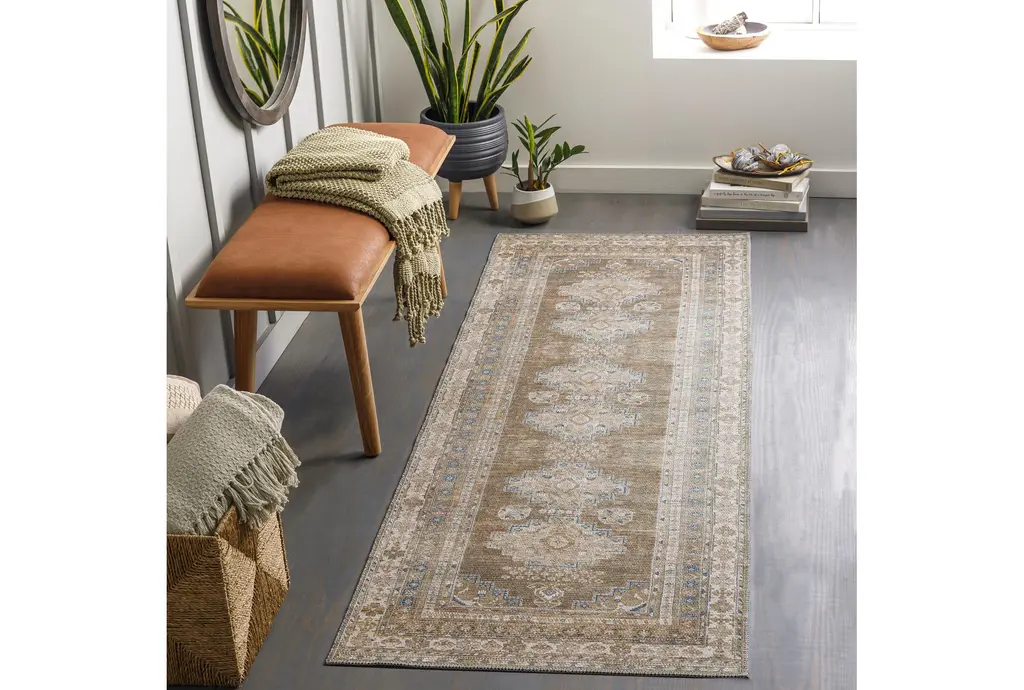 2'7"x7'3" Runner Rug - Colbourn Traditional Machine Washable Fabric Dusty Sage/blue | Uv Resistant | Rectangle | Performance By Surya