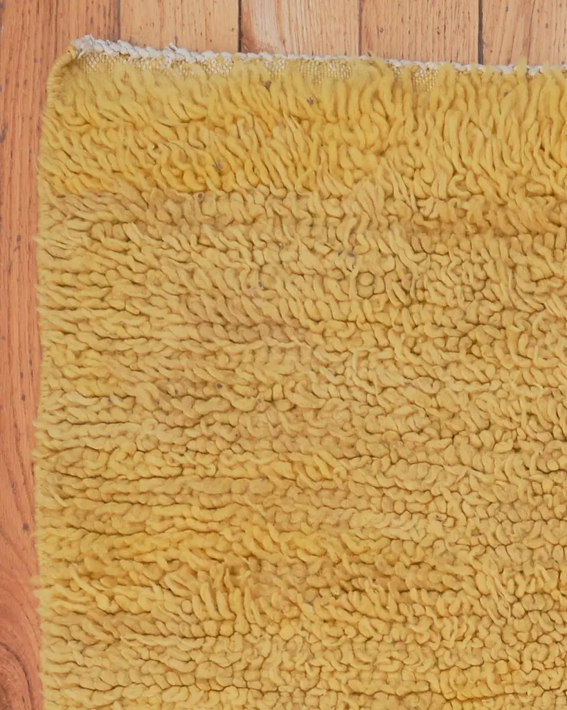 2’8” X 6’0.5” Alyssum Yellow Handmade Moroccan Wool Vintage Rug