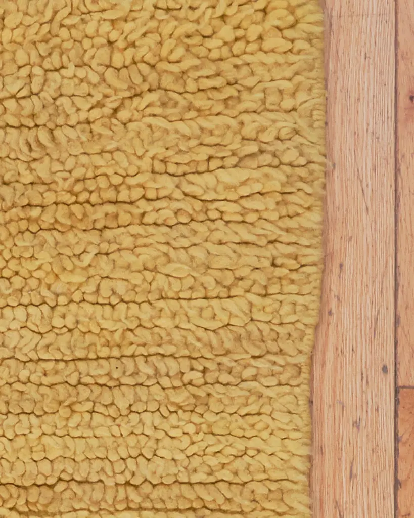 The Alyssum rug is a charming vintage Moroccan piece, handwoven with care by Berber artisans. Made from 100% natural sheep’s wool, this light yellow rug offers a soft and inviting texture that brings warmth and comfort to any space. Its minimalist design and soothing color palette make it a versatile addition, seamlessly complementing both contemporary and traditional interiors.Dimensions:L: 6'0 1/2" (72 1/2")W: 2'8" (32")Estimated Weight: 18 lbsShipping Dimensions: 12” H x 12” W x 36” L (rolled)Material: 100% sheep's woolCare: Vacuum regularly, avoiding abrasive brushes. Spot clean spills immediately. Do not dry clean; for deep cleaning, consult a professional.This vintage rug is not only a testament to the exceptional craftsmanship of the Berber tribes but also an enduring piece that will add a touch of Moroccan elegance to any room. Alyssum’s light yellow hue and luxurious texture are sure to enhance your home’s atmosphere.