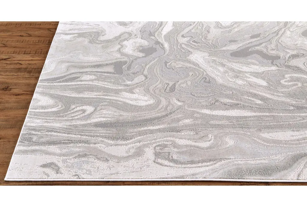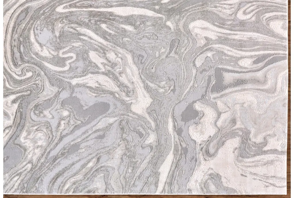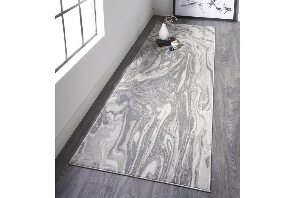 2'8"x7'8" Runner Rug-Marble Swirl Light Grey | Rectangle | Low Pile | Abstract
