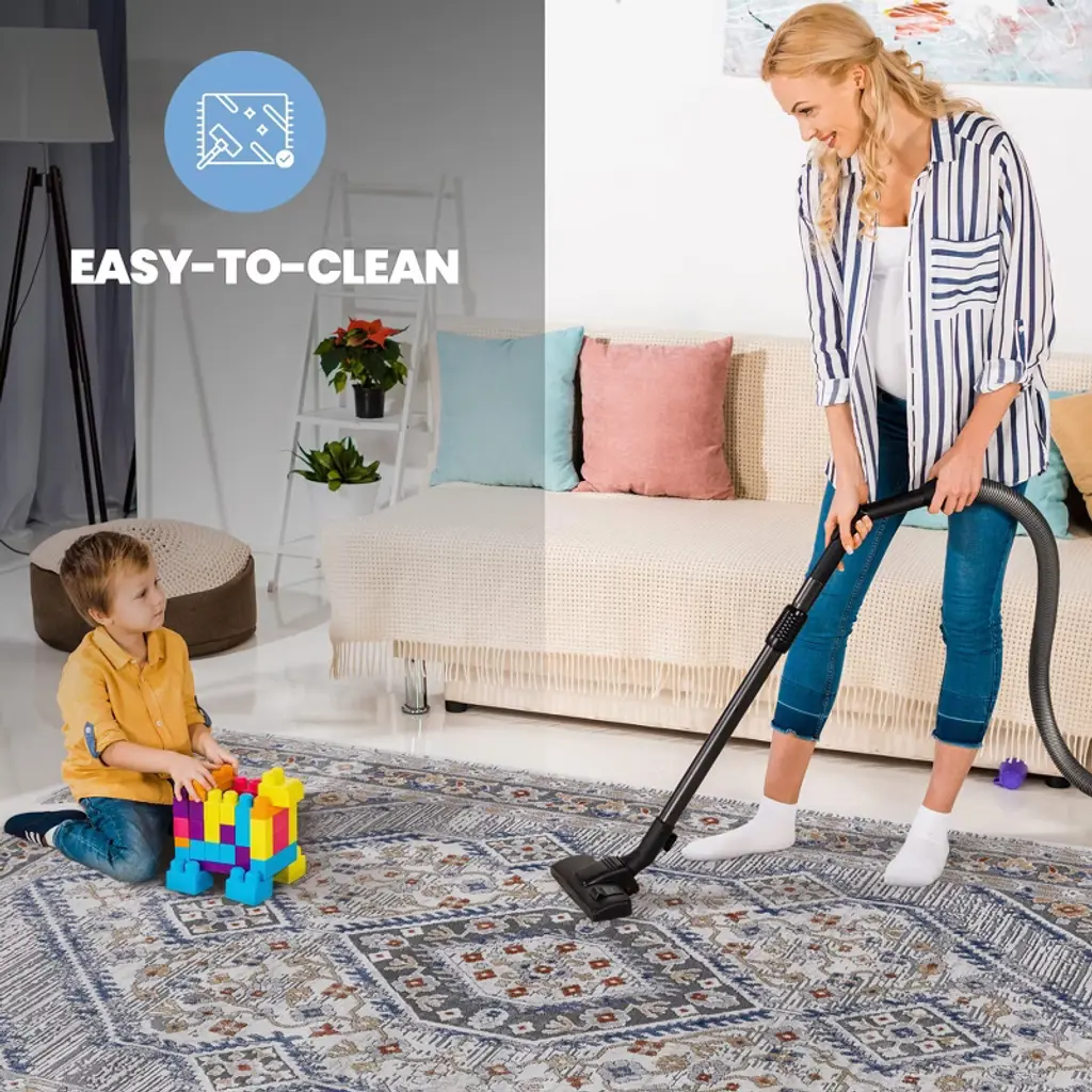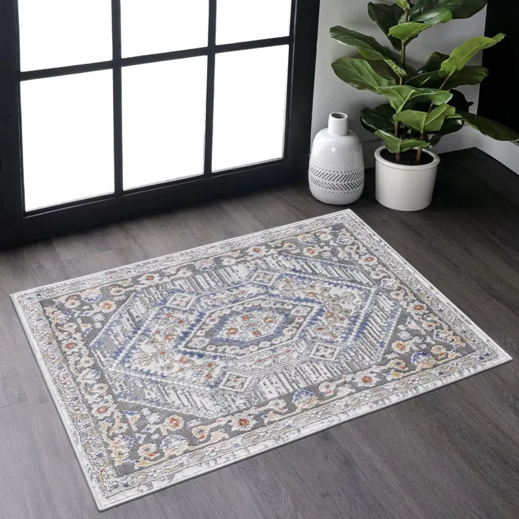 2X3 Blue/Cream/Bordered Non-Shedding Living Room Bedroom Dining Home Office Stylish and Stain Resistant Area Rug