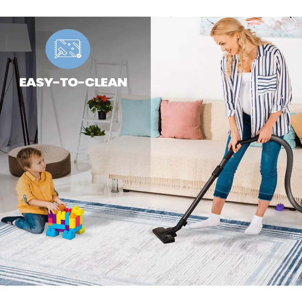 2X3 Blue/Ivory/Bordered Non-Shedding Living Room Bedroom Dining Home Office Stylish and Stain Resistant Area Rug
