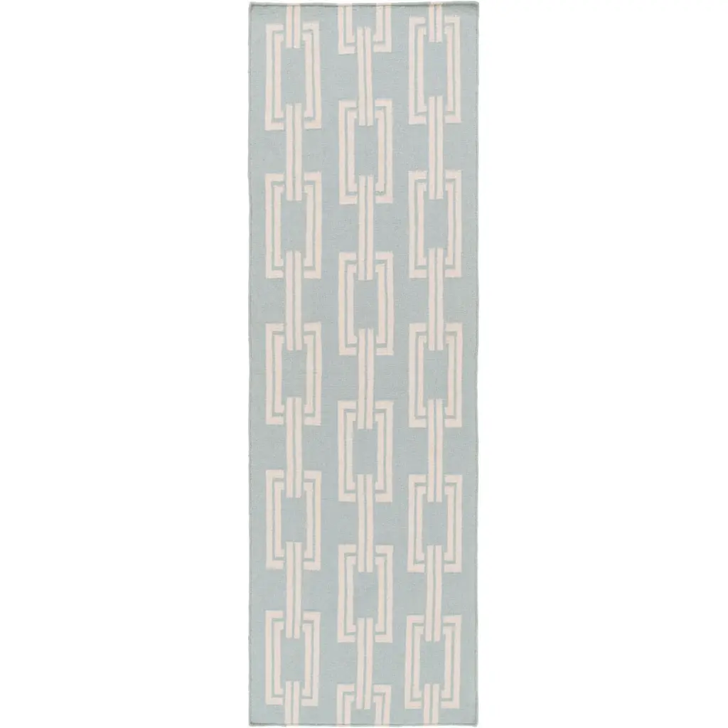 Bring a touch of contemporary style to your entryway with our 2'x3' Alexander Aqua/Lime rug. Its low pile fiber construction makes it perfect for high traffic areas, while its vibrant color scheme adds a pop of personality to any space.
