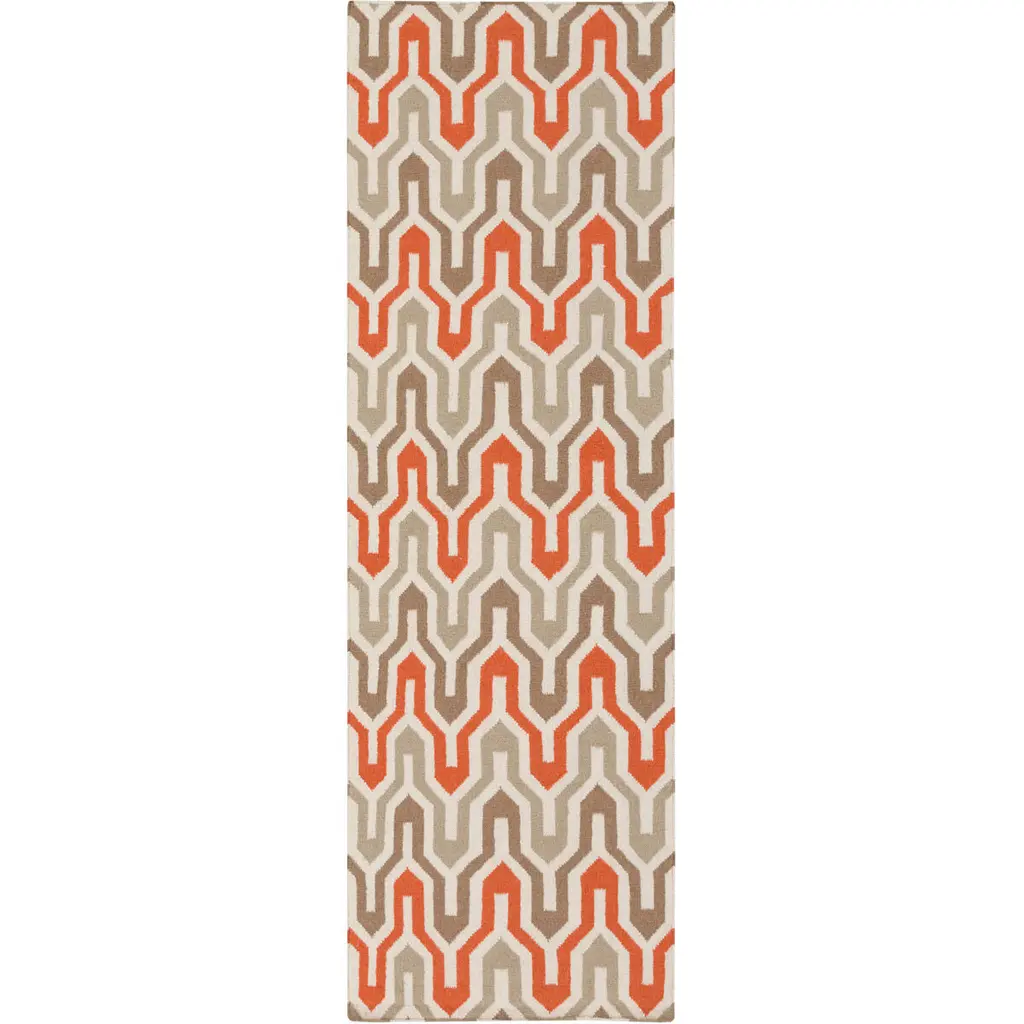 Enhance your space with the 2'x3' Fiber Rug- Andres Taupe / Tangerine by Surya. This contemporary low pile rug features a vibrant blend of ivory, tangerine, and taupe colors, adding a touch of modern flair to any entryway, office, or indoor area. Made from 100% wool, this rectangle-shaped rug is designed to be both stylish and functional.