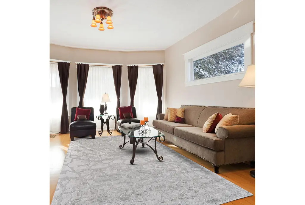 This 2'x3' Fiber Rug-Silver Pebbles is a perfect addition to any contemporary living space. Crafted from wool viscose, this rectangle rug features a textured detailing that adds a soft, neutral grey accent to your home. Ideal for entryways, indoor spaces, and living rooms, this small rug blends seamlessly with modern decor.