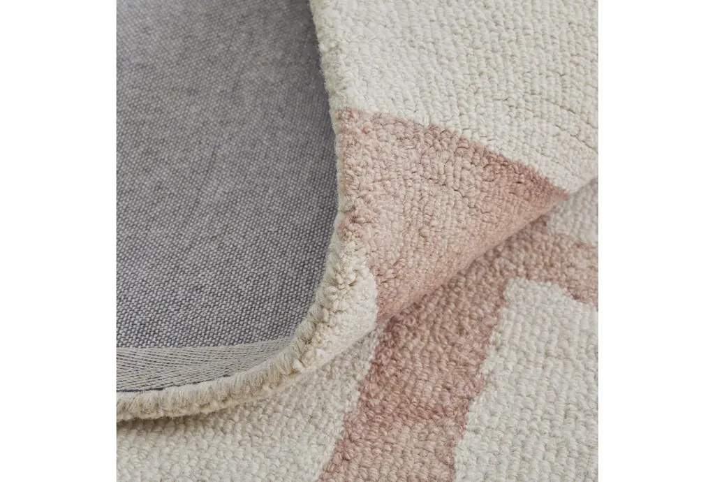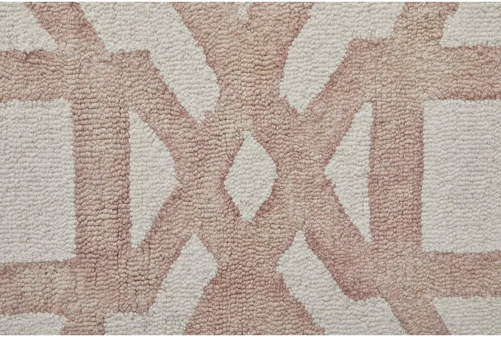 Enhance your living space with the 2'x3' Fiber Rug in Traditional Blush Pink Tie Dye Trellis design. This small rectangle rug is perfect for adding a touch of soft color to any room. Its beautiful blush hue and intricate pattern make it a standout piece that complements a variety of interior styles.
