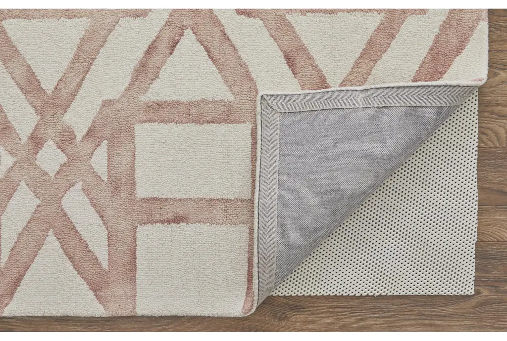 2'x3' Fiber Rug-Traditional Blush Pink Tie Dye Trellis Rectangle Hooked Low Pile