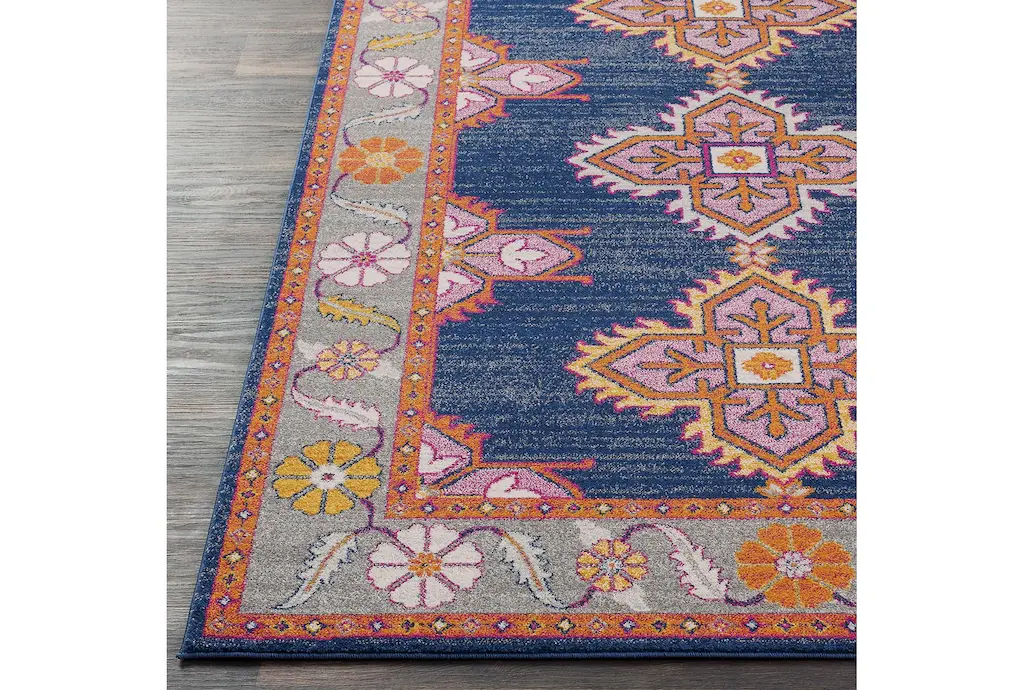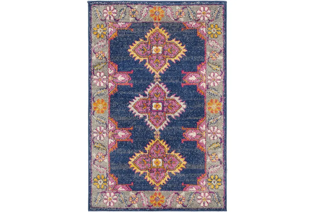 Enhance your home with the stunning 2'x3' Fiber Rug-Traditional Botanical Bold Multicolor by Surya. This vibrant area rug features a beautiful floral pattern in a rich palette of dark blue, medium grey, light grey, garnet, burnt orange, saffron, and ivory. Perfect for any entryway, kids' room, or indoor space, its low pile design ensures easy maintenance and durability.