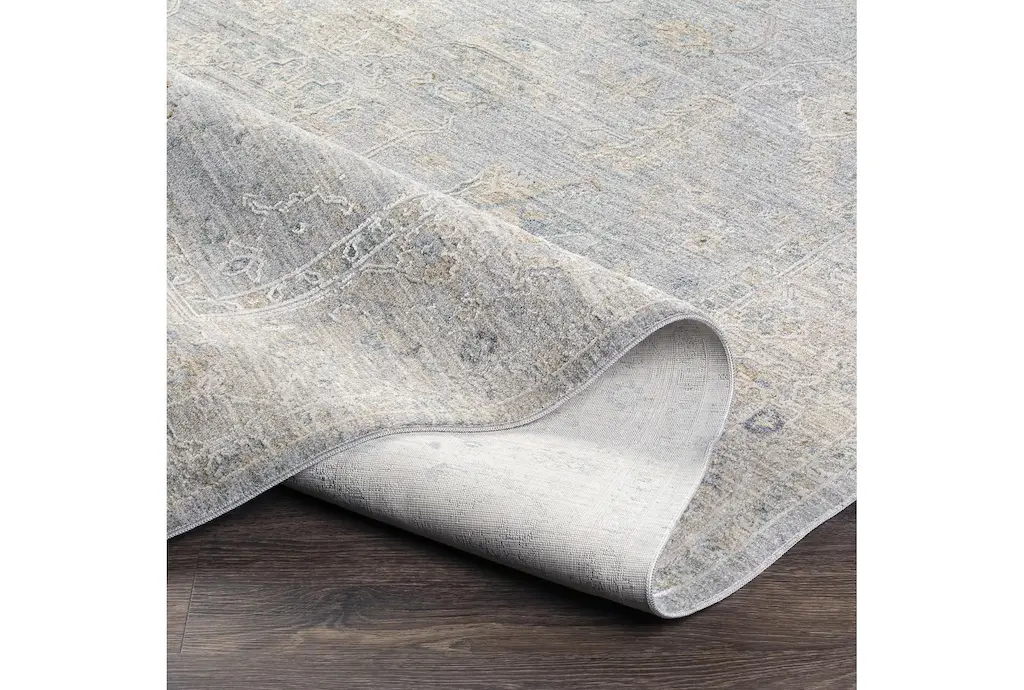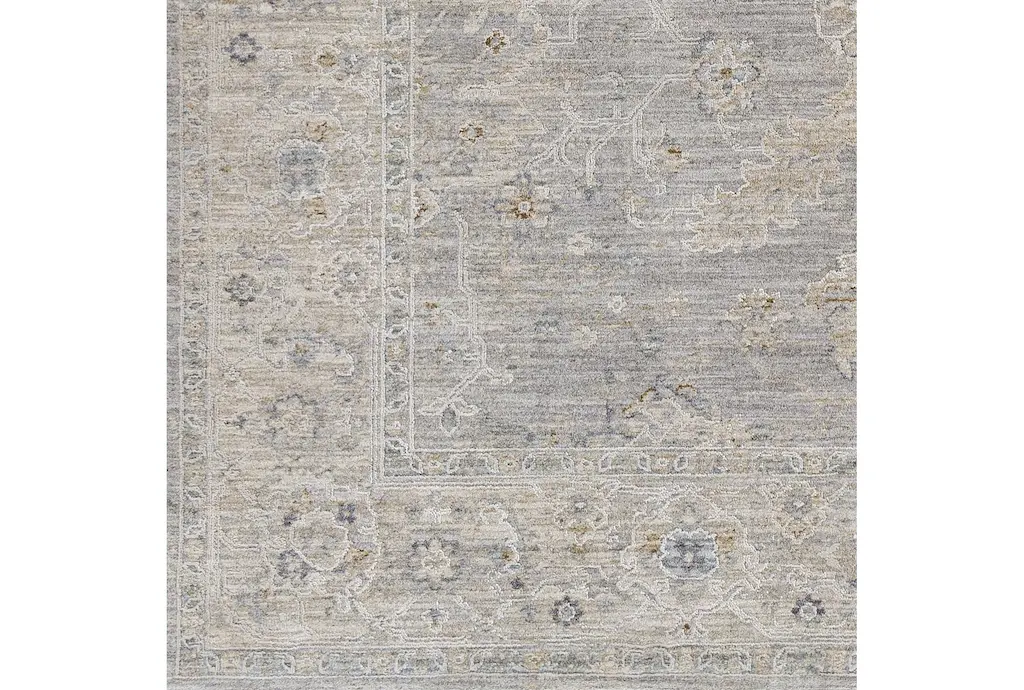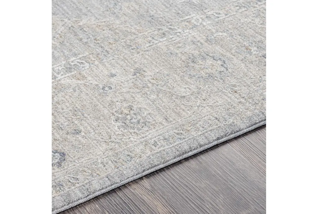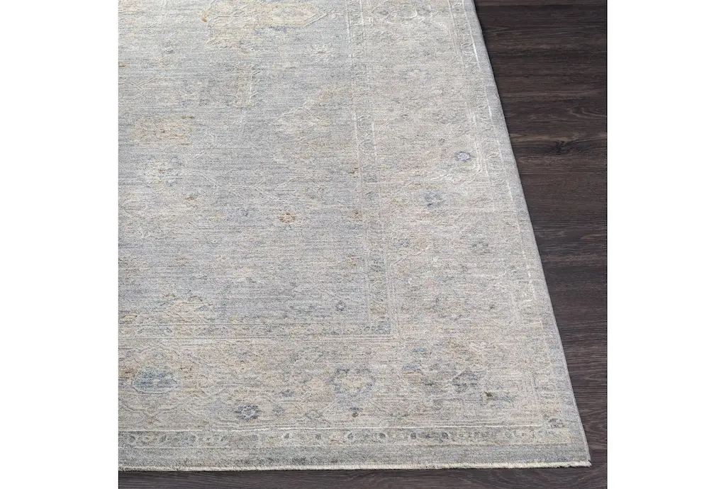 Enhance your living space with the 2'X3' Fiber Rug- Traditional Botanical Light Grey / Charcoal Fringed By Surya. This rectangular indoor rug features a beautiful botanical design in light grey, medium grey, charcoal, beige, tan, denim, and camel colors. Its low pile construction makes it perfect for high-traffic areas, adding both comfort and functionality.