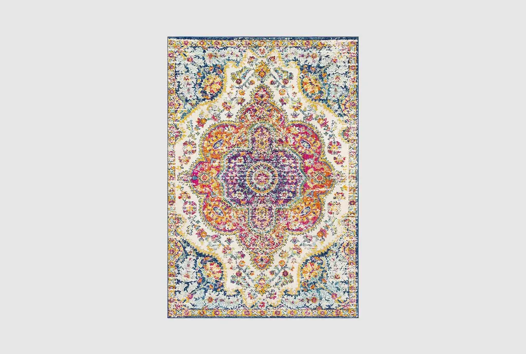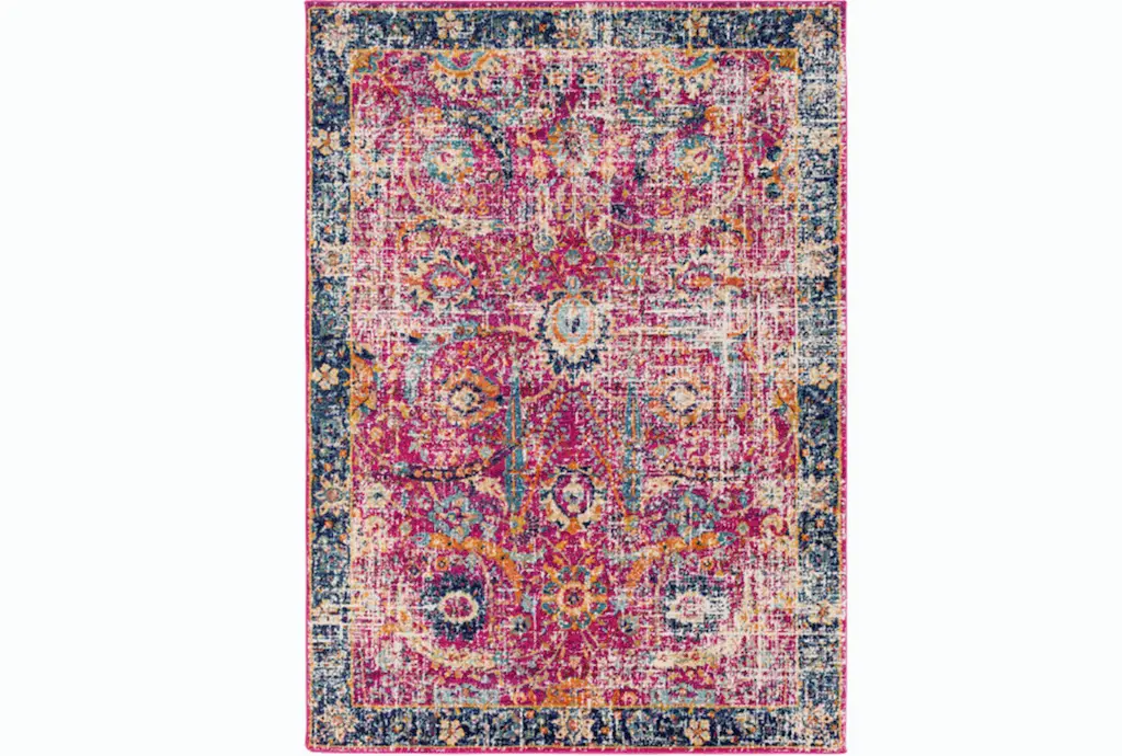 2'x3' Fiber Rug- Traditional Bright Multicolored Pink | Floral | Low Pile | Rectangle By Surya