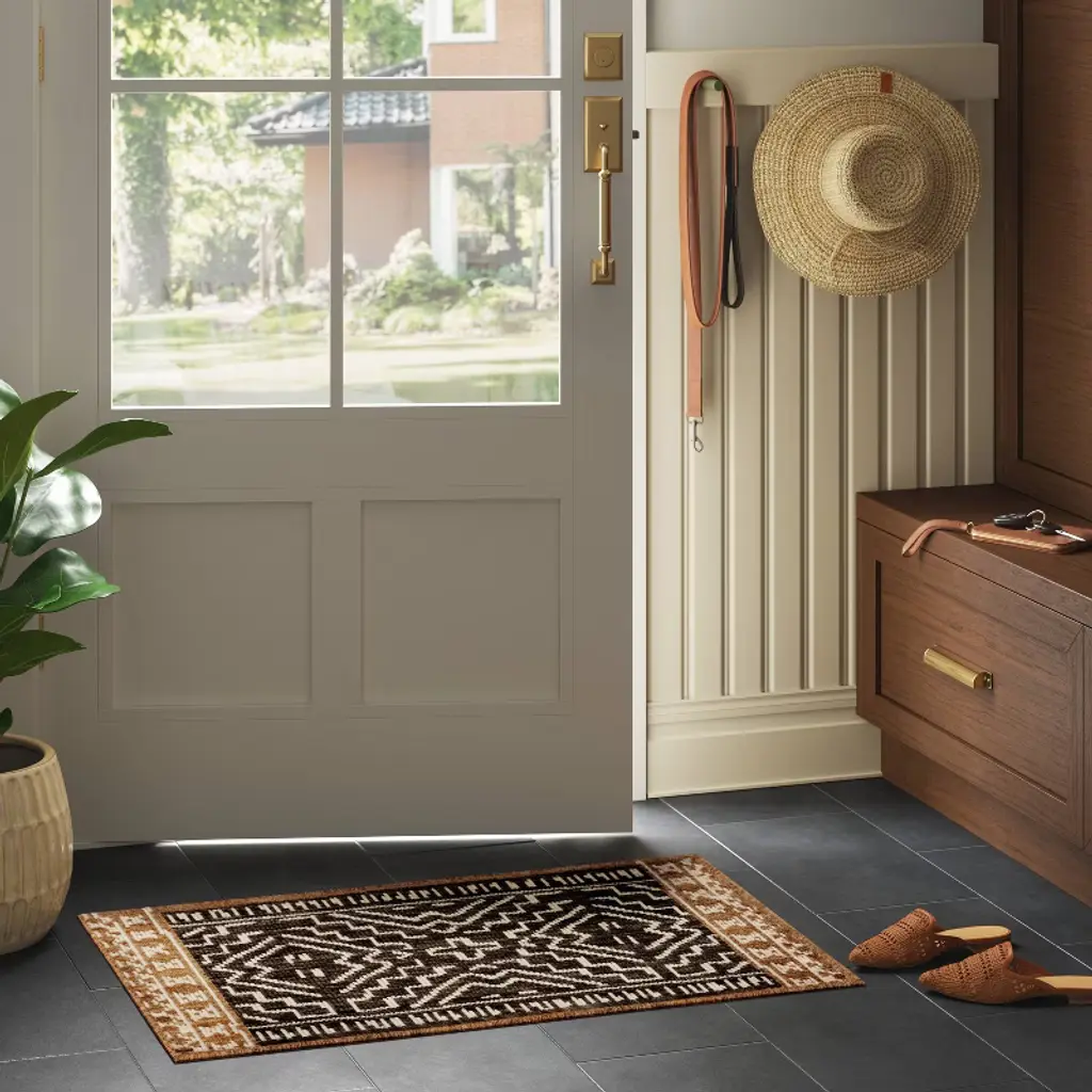 Beautifully accent your indoor space with the Global Rug from Threshold™. The rug features a global pattern on a woven backdrop in black and tan hues to elevate your space while blending effortlessly with a variety of decor styles. Easy to clean, the low-pile rug is highly versatile and suitable for high-traffic areas like your kitchen, living room or entryway.Threshold™: Looks like home, feels like you.