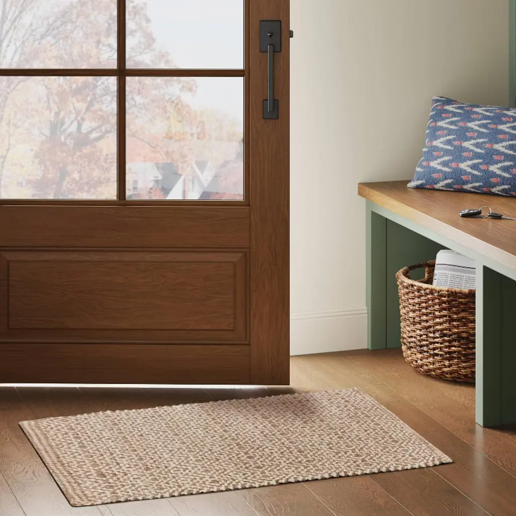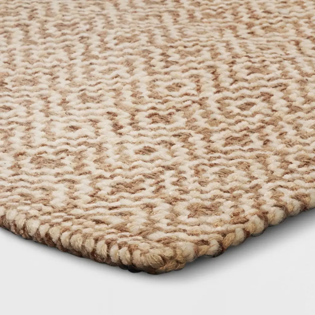 Add earthy style to your floor with this 2-Foot x 3-Foot Jute Accent Rug from Threshold™. This handwoven accent rug is adorned with a seamless geometric diamond pattern in tan and ivory shades, adding a lively touch to any indoor space. Plus, it features a low-pile construction crafted from a fabric blend of jute, rayon and wool with 100% cotton backing. Use it to highlight specific areas, such as in front of a reading chair or small desk, or keep it at the foot of your bed or inside your entryway for a welcoming touch.Threshold™: Looks like home, feels like you.