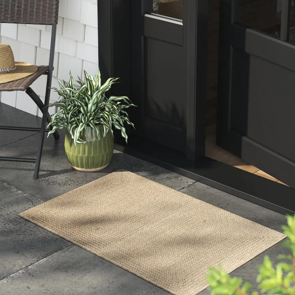 Add a combination of comfort and timeless style to your flooring with this Natural Woven Rectangular Braided Outdoor Accent Rug from Threshold™. This woven accent rug showcases a chic braided pattern in a heathered cream hue for classic style that's perfect for catching dirt from shoes so it doesn't get tracked into your home. Plus, a flat-pile construction makes it highly versatile and easy to place in your balcony, deck or patio space.Threshold™: Looks like home, feels like you.