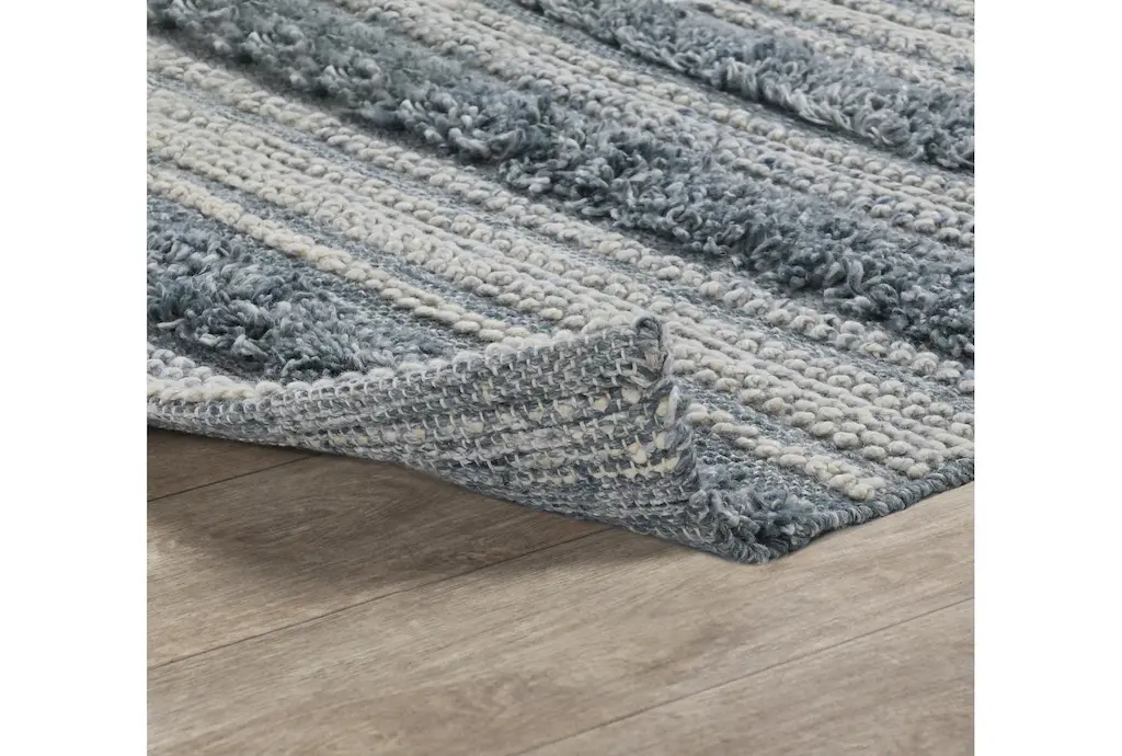 Introducing the 2'X3' Rug-Cove High Performance Textural Lines Blue, a perfect addition to your living room. Crafted from 100% recycled polyester, this rug offers durability and sustainability. Its rustic charm and neutral grey tones make it a versatile piece for any indoor space.
