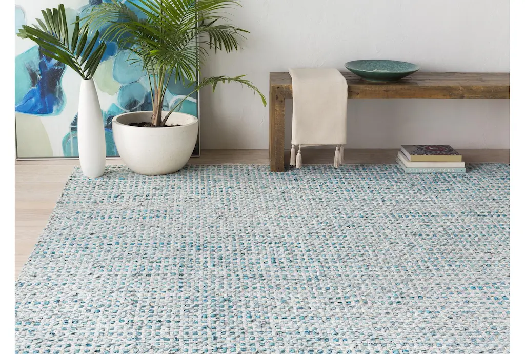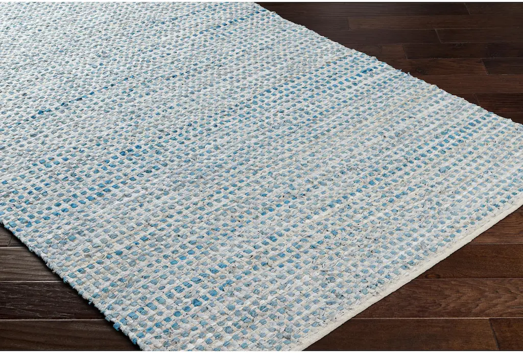 Enhance your living space with the rustic charm of this 2'x3' rug by Surya. The rectangle shape and low pile design make it a versatile addition to any room, from the bathroom to the kitchen. The grid pattern in grey adds a touch of sophistication, while the combination of leather and cotton fibers ensures durability and comfort.