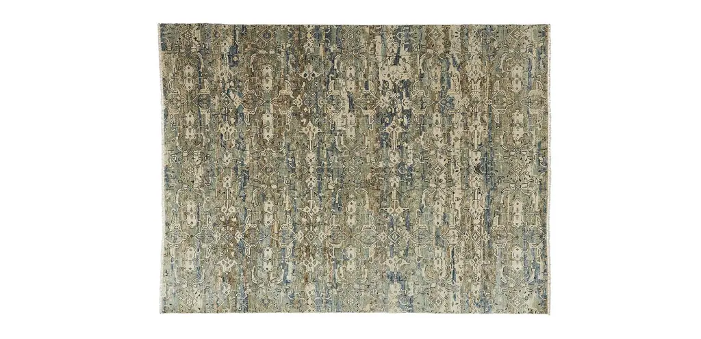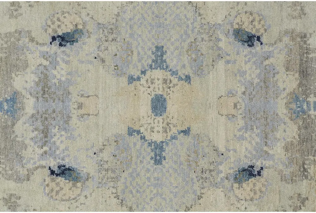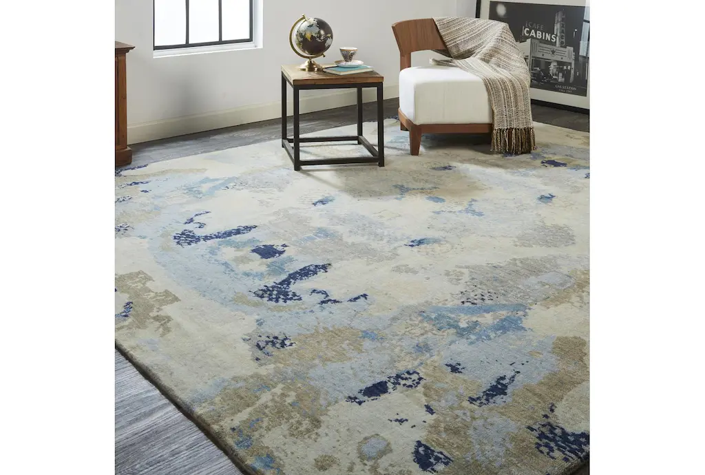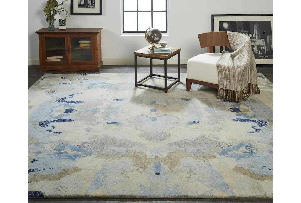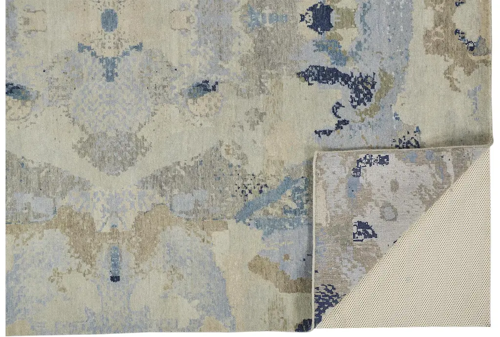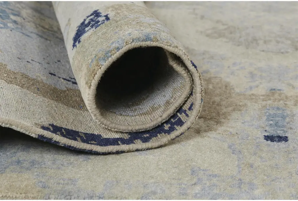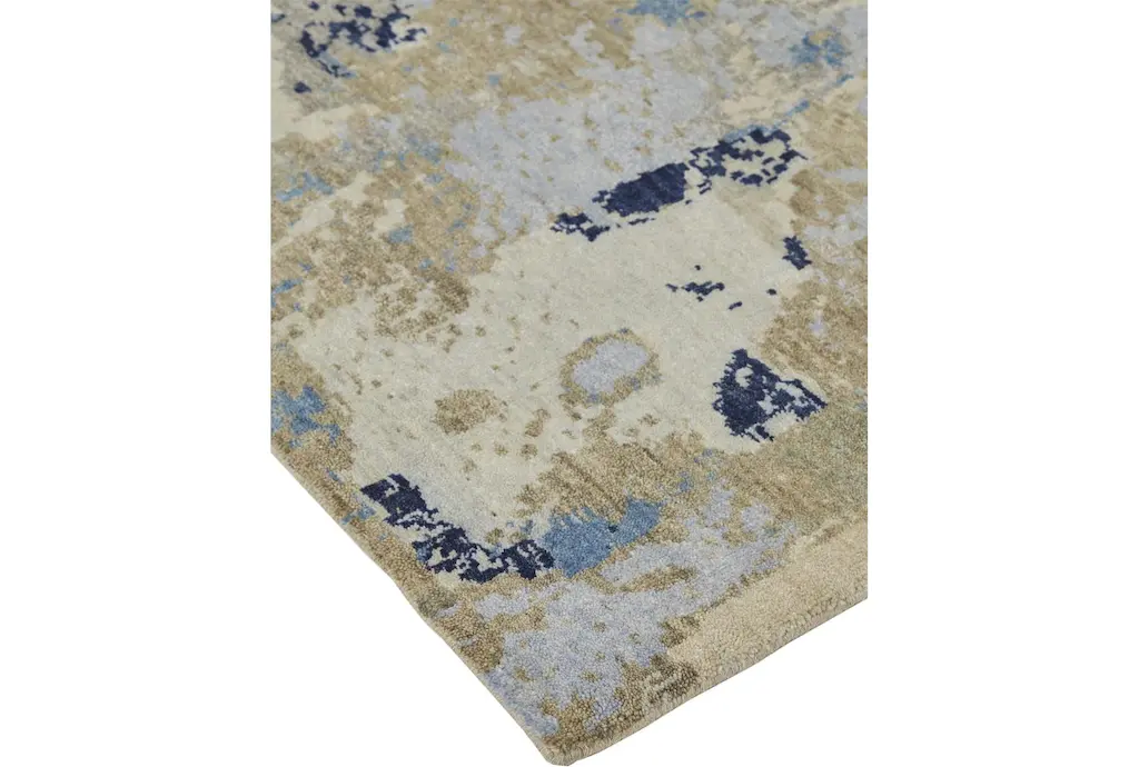 2'x3' Rug-Modern Cresci Distressed Blue Wool Rectangle Abstract Low Pile