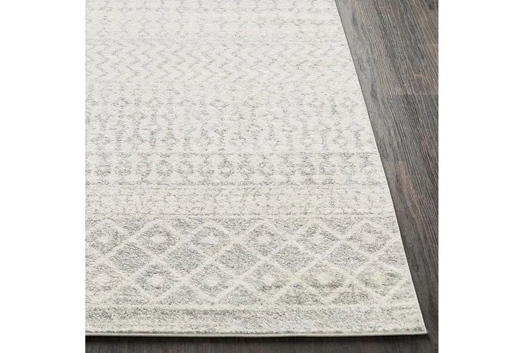 Introduce a touch of modern style to your entryway with the 2'x3' Rug by Surya. Featuring a geometric pattern in light grey, medium grey, and white, this low pile rug is designed to blend seamlessly with any decor. Made from 100% polypropylene, it offers durability and easy maintenance.