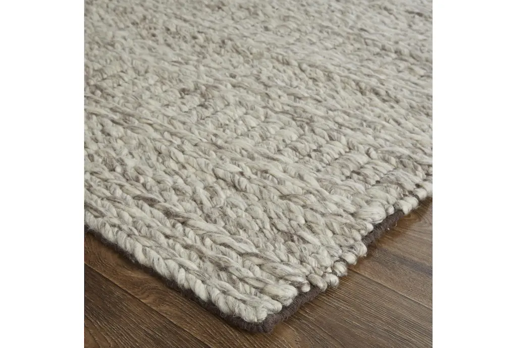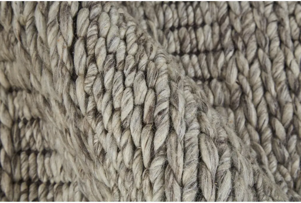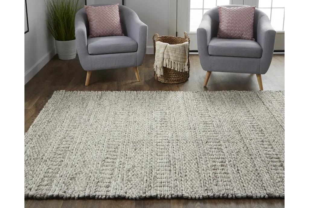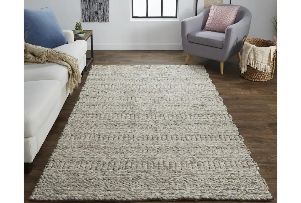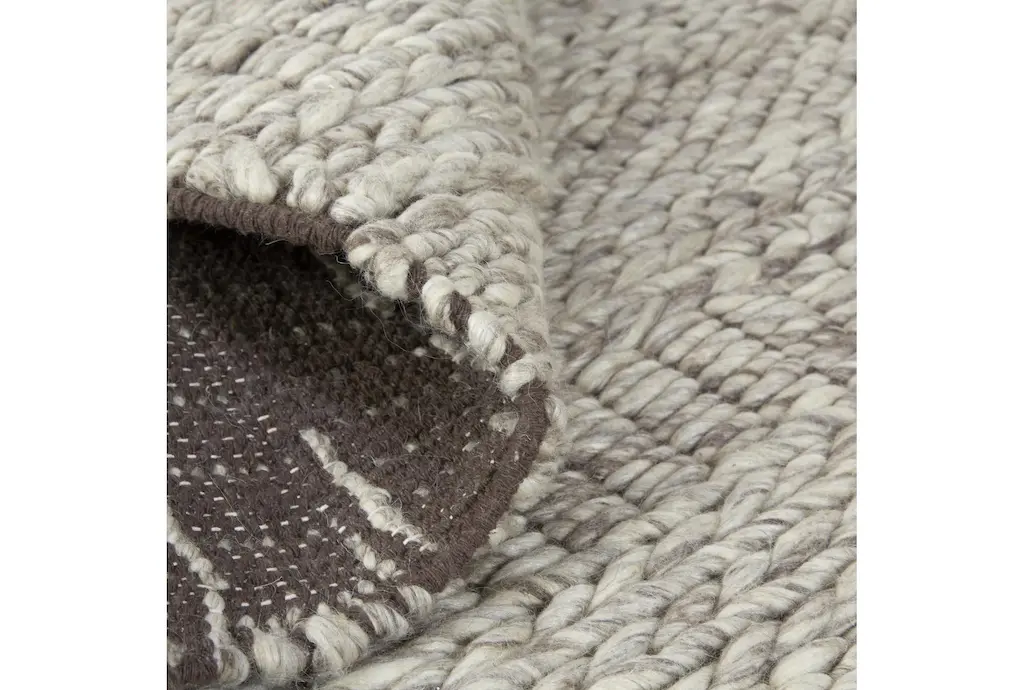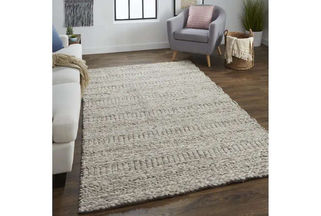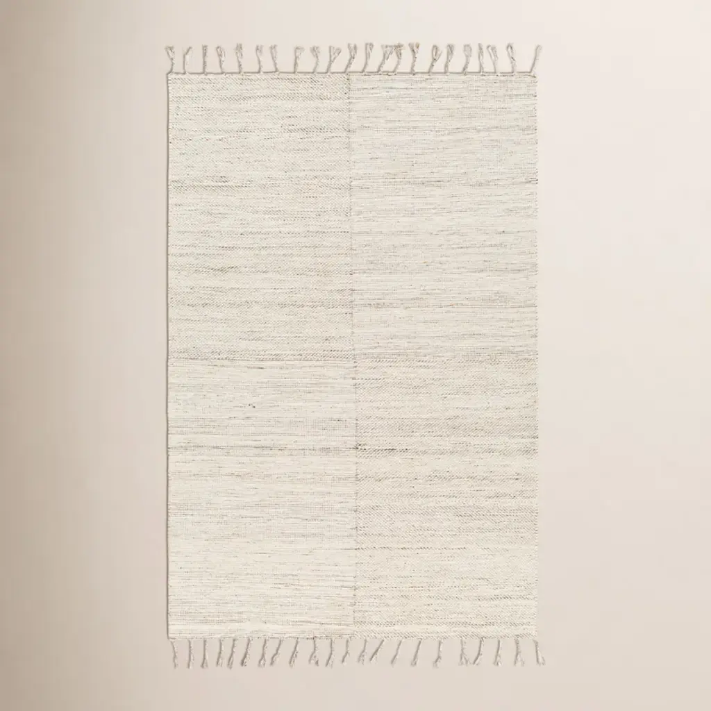 2'x3' Rug-Oatmeal Textured Handwoven Wool Stripe | Solid | Low Pile | Rectangle