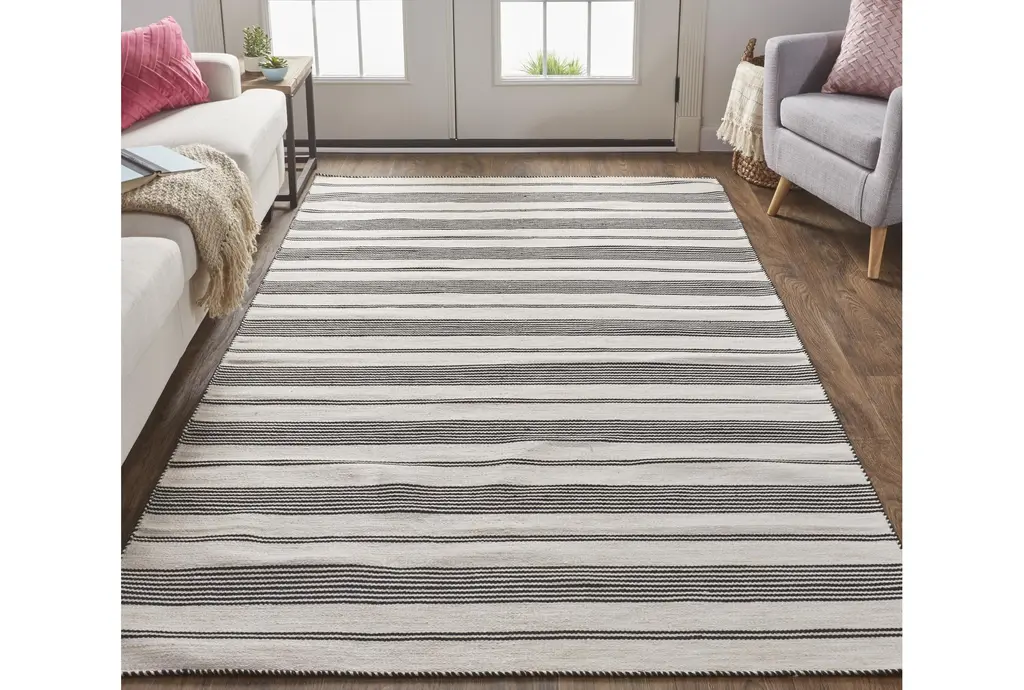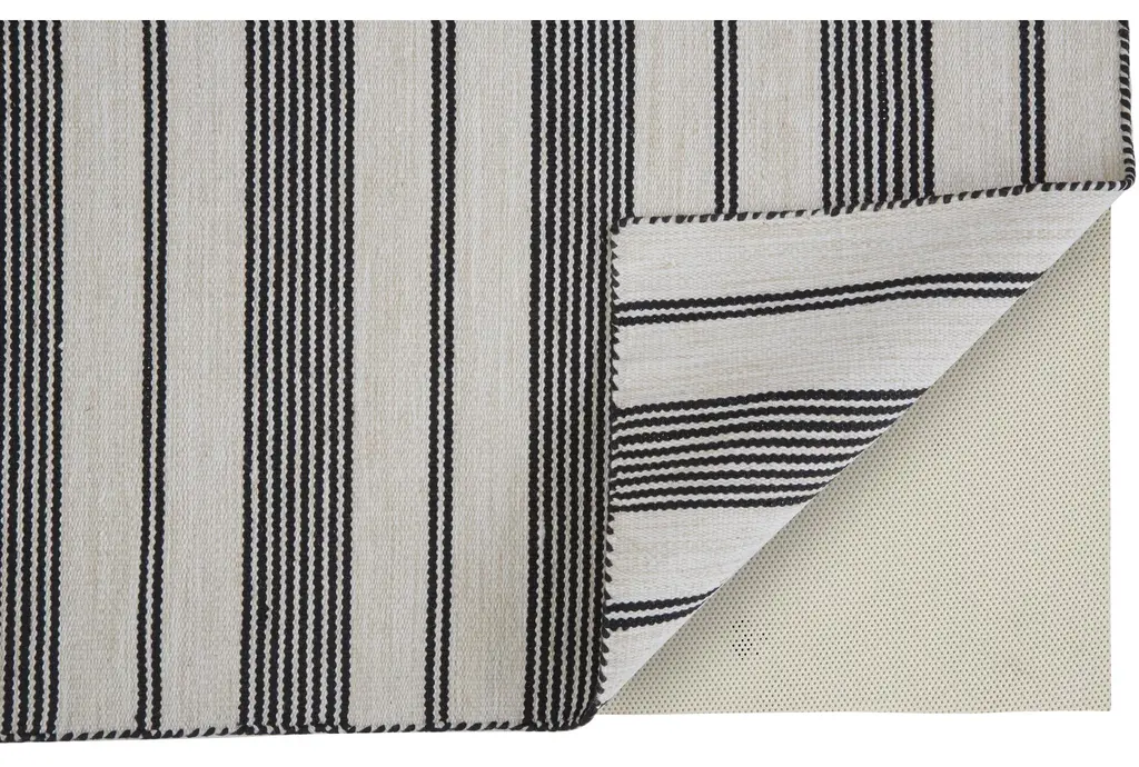 2'x3' Rug-Recycled Pet Fiber Black Pin Stripes | Dhurrie | Low Pile | Rectangle