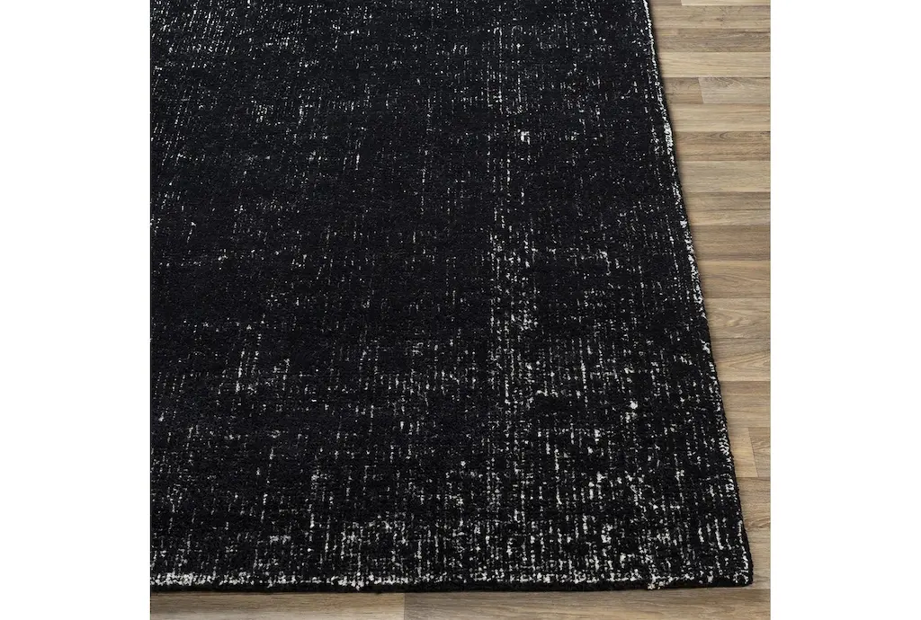 Transform your indoor space with the 2'x3' Fiber Rug by Surya, featuring a modern solid design with white striation in black and white. This low pile, rectangular rug is crafted to complement contemporary decor styles, adding a touch of sophistication to any room.