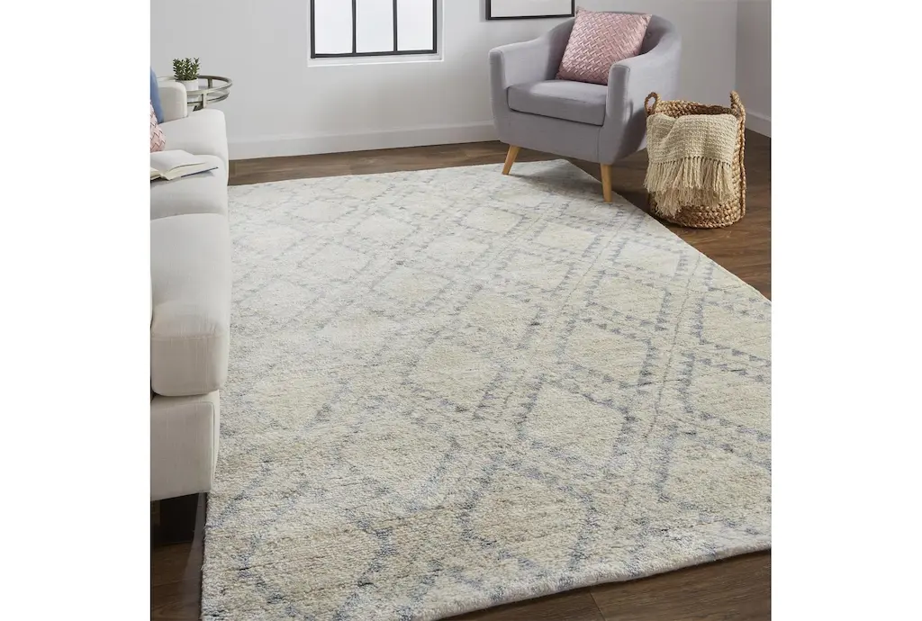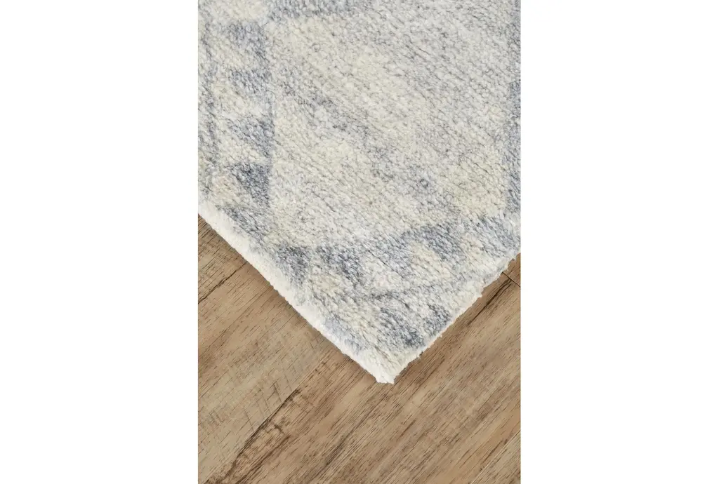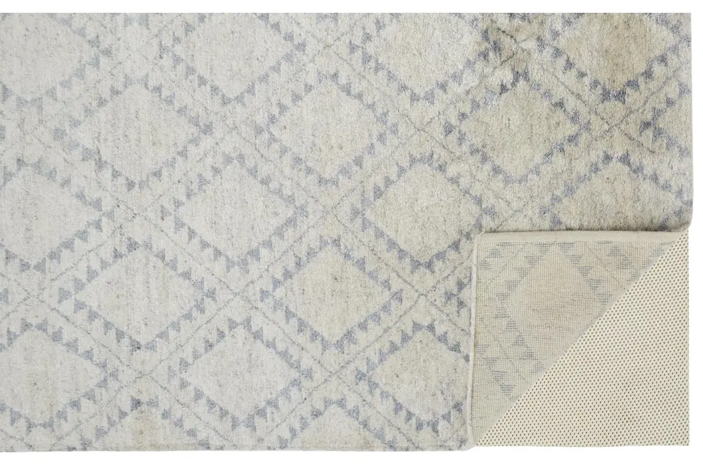 2'x3' Rug-Traditional Wool And Bamboo Hand Knotted Ice Blue | Lattice | Rectangle