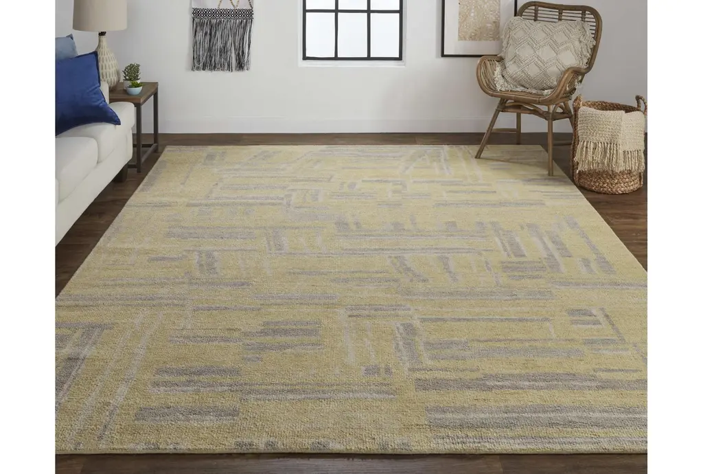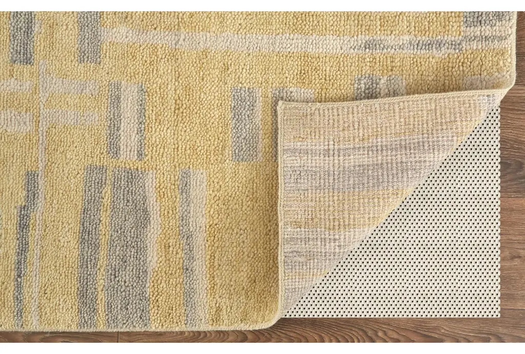 2'x3' Rug- Weatherfield Gold Hand Knotted Wool By Thom Filicia | Non Slip | Handwoven | Abstract | Low Pile