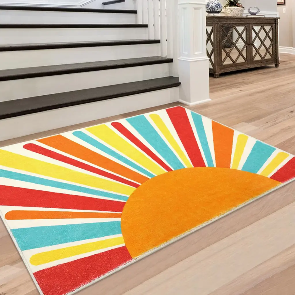 Transform your home with our vibrant Area Rug, designed to bring a splash of color and style to any room. Whether you're looking to enhance your living room, bedroom, or playroom, this modern minimalist rug is the perfect addition to your decor.Key Features:- Versatile Home Decor: Our colorful area rug is designed to complement any room, offering a modern minimalist touch that enhances your living space effortlessly.- Machine Washable: Say goodbye to the hassle of cleaning. This rug is machine washable, ensuring easy maintenance while retaining its vibrant colors and soft texture, wash after wash.- Non-Slip Safety: Safety is a priority with our non-slip backing, providing stability on various surfaces. Ideal for high-traffic areas such as entryways and kitchens, this rug stays securely in place.- Stylish Entryway Solution: Welcome your guests with style. Our rug doubles as an elegant front door mat, effectively trapping dirt and moisture from shoes to keep your home clean.- Multi-Purpose Use: Beyond the entryway, this versatile rug is perfect for kitchens, bedrooms, and playrooms, offering endless decorating possibilities and enhancing every space it graces.Upgrade your home decor with our Area Rug, where functionality meets style. Perfect for those who appreciate both aesthetics and practicality, this rug is a must-have for any modern home. Order now and experience the blend of beauty and convenience in one stunning piece.