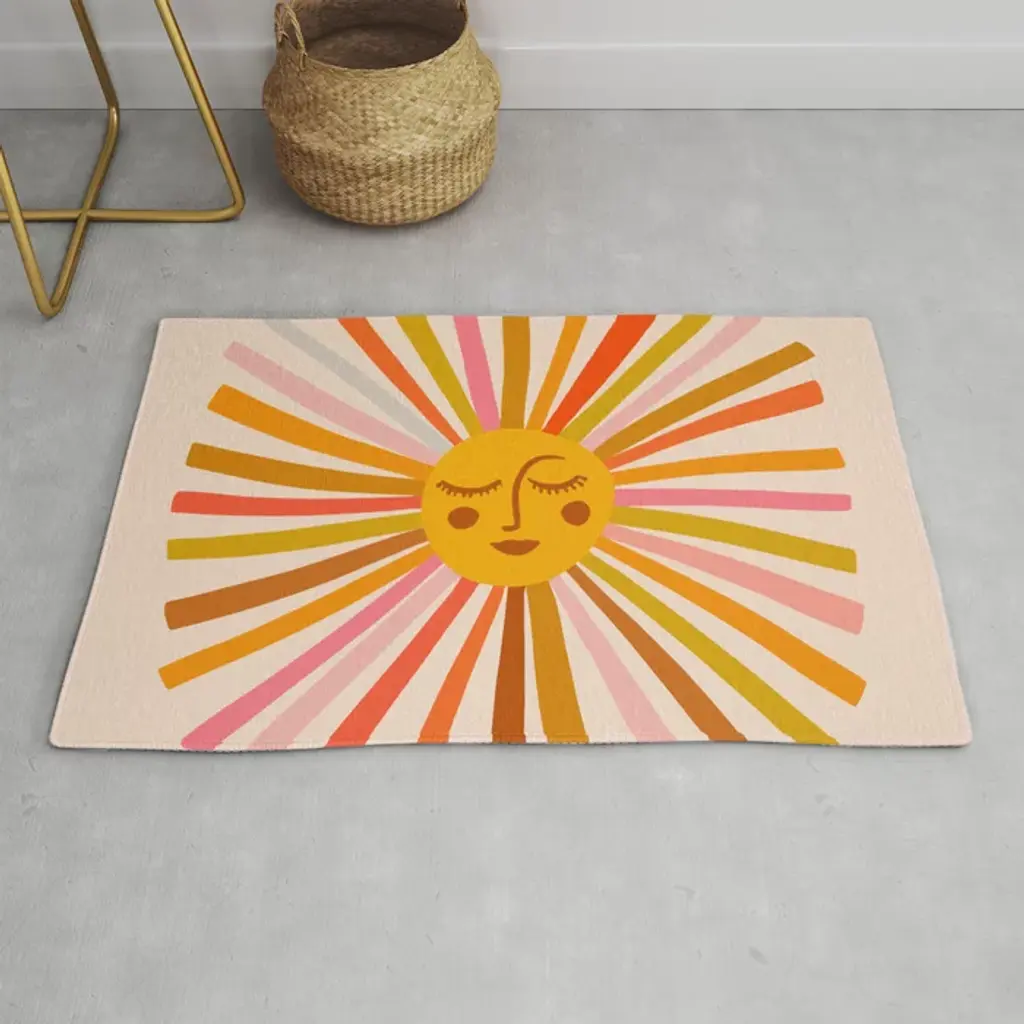 2X3 Small Area Rug, Machine Washable Colorful Area, Non Slip Rug For Living Room, Non-slip Carpet, Modern Minimalist Front Door Mat, Sun Accent Rug