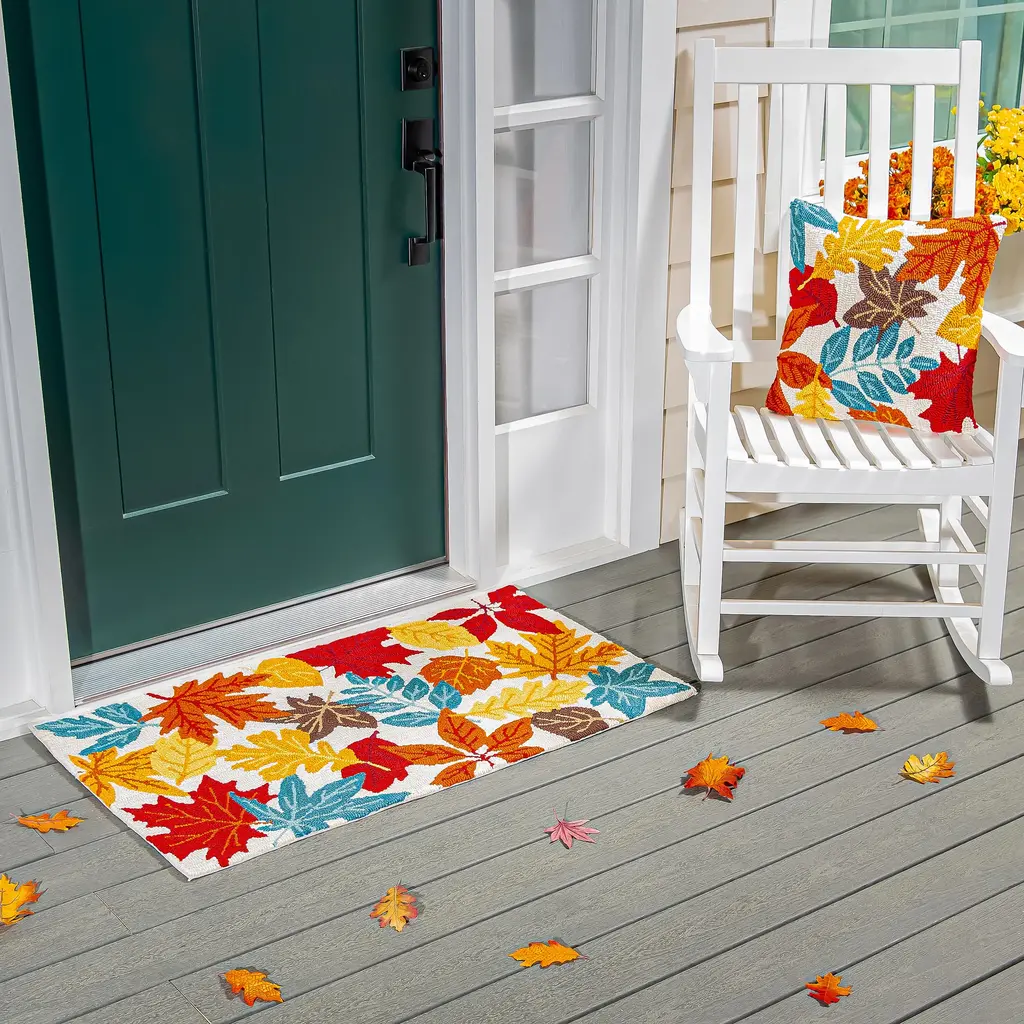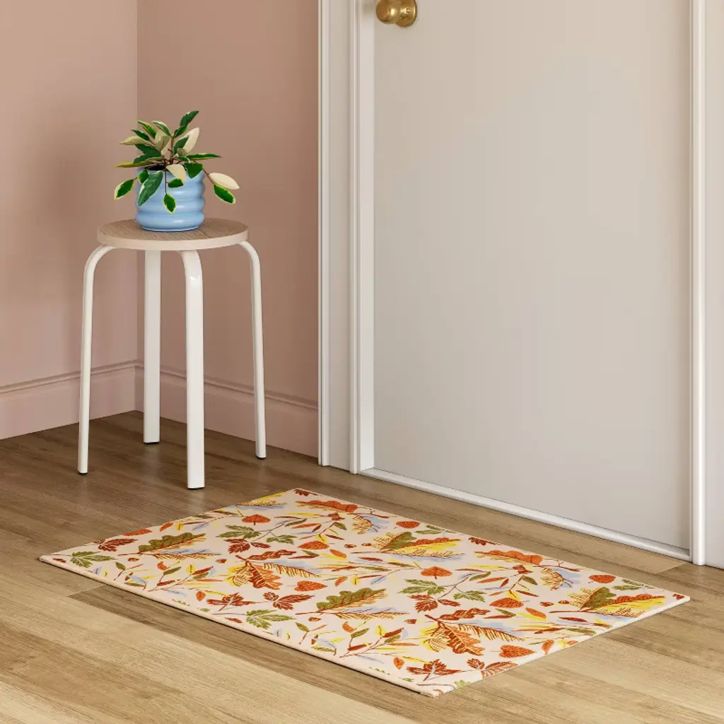 Add seasonal style to your floor with this Washable Leaf Harvest Scatter Woven Accent Rug from Room Essentials™. Showcasing a harvest leaf print in a cream, orange and green hue, this woven accent rug adds lovely flair to your floor space while blending easily with your existing decor. The woven rectangular rug features a low-pile construction that is suitable for use in high-traffic areas, while the latex backing helps keep the rug from sliding and slipping.Room Essentials™: Everyday Value