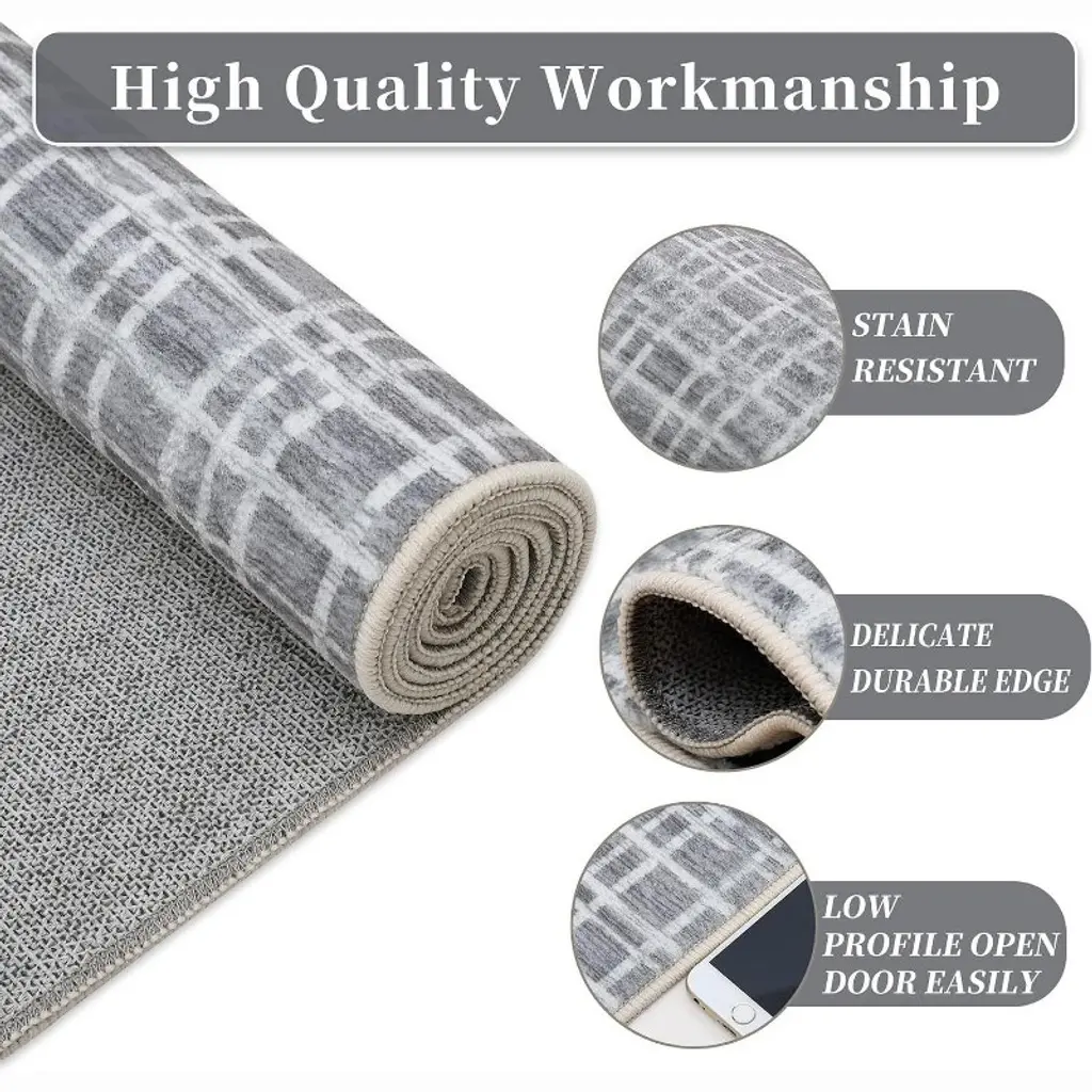 Transform the comfort and style of your home with our modern plaid area rug, meticulously designed to meet the needs of busy households without sacrificing aesthetic appeal. Engineered for effortless maintenance, this rug is fully machine washable and resists stains, making cleanup as simple as tossing it into your washing machine. Whether it’s a splash in the kitchen, muddy shoes in the mudroom, or everyday spills in the dining area, keeping your floors fresh and inviting has never been easier—perfect for active families, pet owners, or anyone craving convenience. The rug’s chic geometric plaid pattern and timeless color scheme make it a stylish addition to any space. Whether brightening up entryways, adding a touch of sophistication to bedrooms, or anchoring dining rooms and offices, its contemporary design effortlessly elevates your decor. Lightweight and foldable, it’s easy to move and reposition, adapting seamlessly to changing layouts or seasonal updates. Safety is woven into every fiber, thanks to the durable TPR non-slip backing that keeps the rug securely in place, even in high-traffic zones. You can confidently let children and pets play, nap, or lounge without worrying about slips or movement, making this rug a reliable choice for family life. Crafted with longevity and practicality in mind, the rug features reinforced edges and a low-pile, non-shedding construction that holds up to daily foot traffic and play. Its wear-resistant surface is designed to look fresh and neat every day, even in the busiest rooms like living rooms, kitchens, home offices, or play areas. Maintenance is a breeze—just machine wash or spot clean as needed to keep your rug looking spotless. What truly sets this rug apart is its plush, ultra-soft feel underfoot. Made from premium faux wool fibers, it delivers a cloud-like, luxurious softness that’s perfect for barefoot strolling, cozy evenings in the living room, or peaceful moments in reading nooks and meditation spaces. Experience the perfect blend of style, safety, and cloud-like comfort with this versatile plaid rug—your everyday moments just got a whole lot cozier.