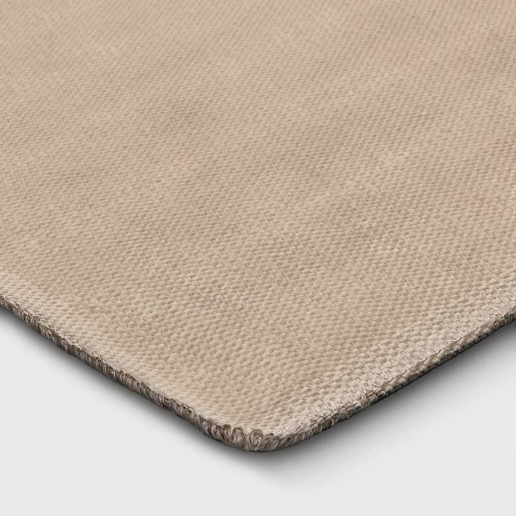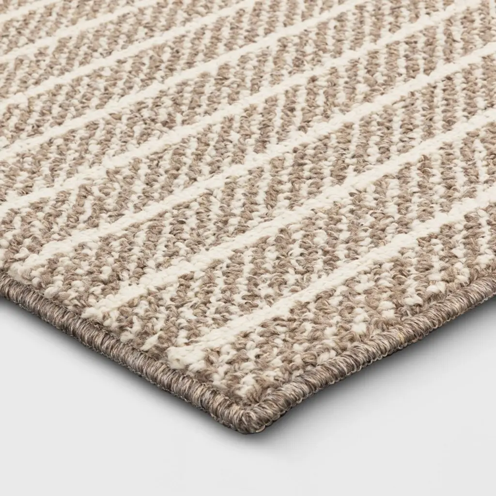 Bring timeless texture and soft comfort to your space with this Washable Striped Accent Rug from Threshold™. This washable accent rug features a striped pattern in heathered gray and almond brown hues with finished edges for a sophisticated look that will coordinate easily with your home's aesthetic. The olefin construction provides soft underfoot comfort, while latex backing helps to keep it in place. Plus, the low pile height makes it super easy to clean, making it great for high-traffic areas like your kitchen, living room or entryway.Threshold™: Looks like home, feels like you.