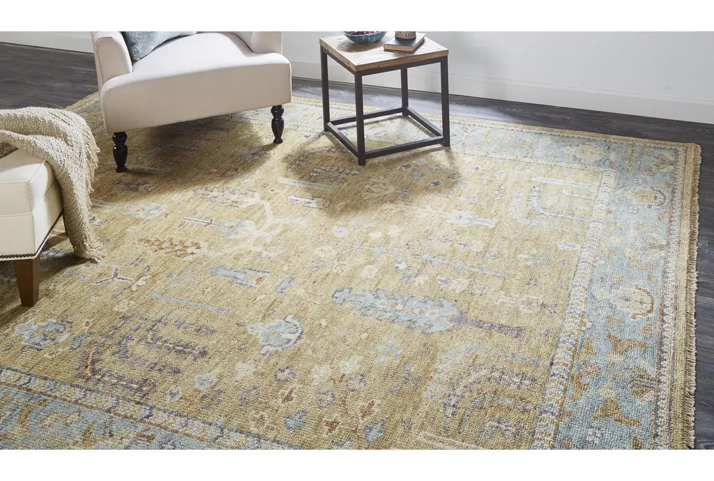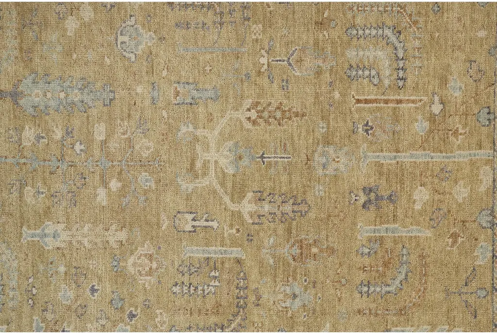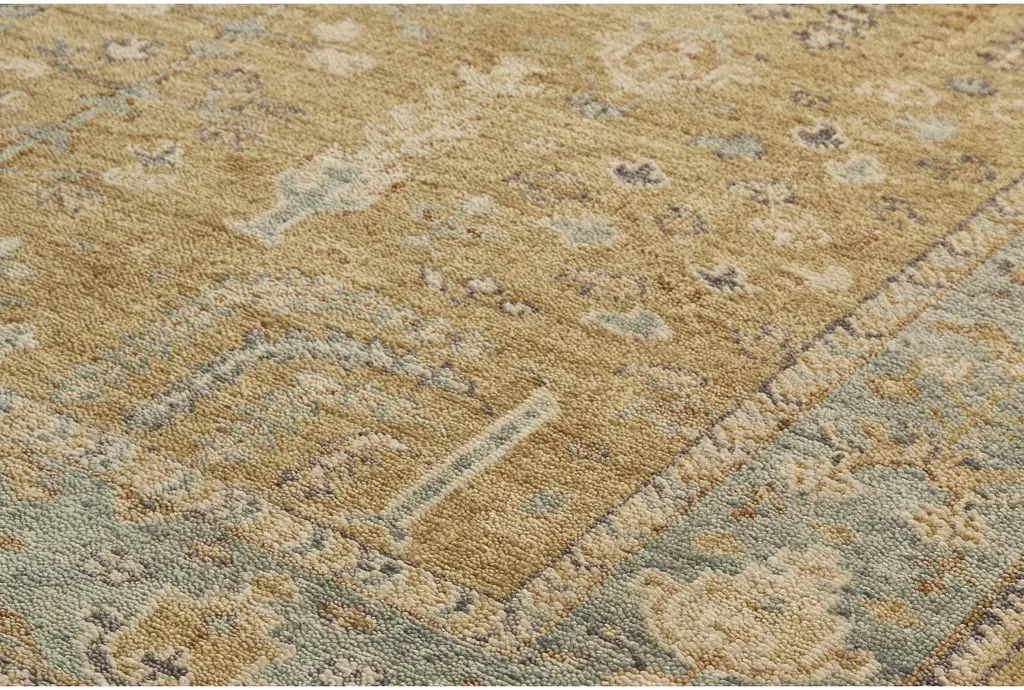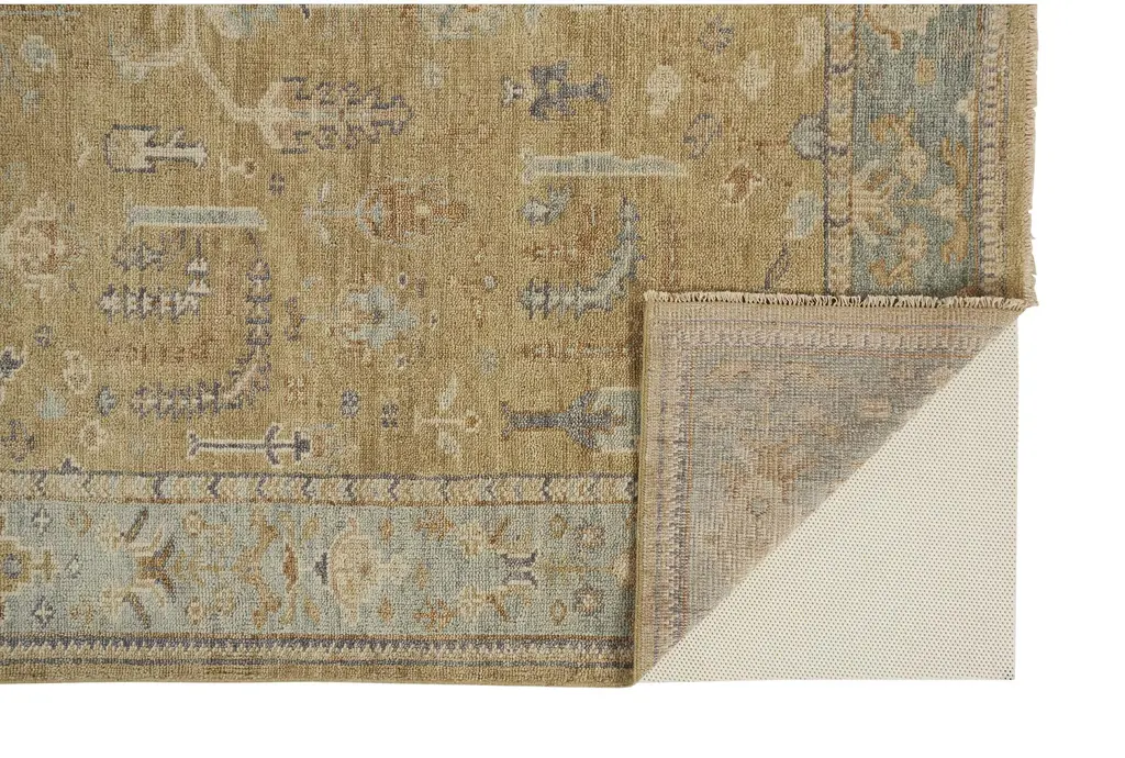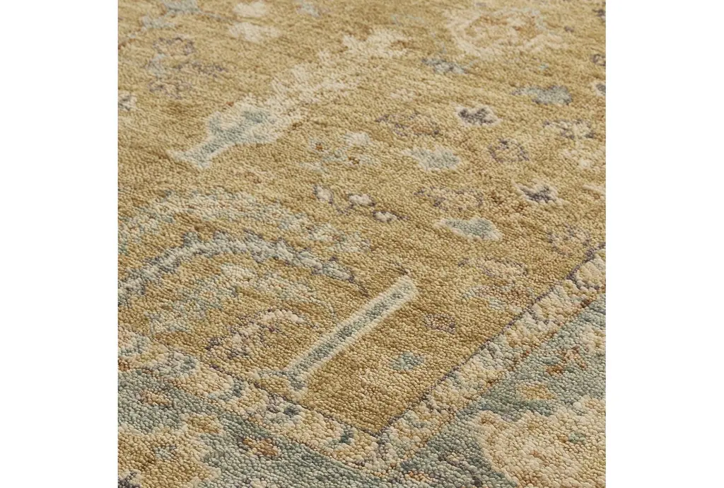 2'x3' Wool Rug-Irie Traditional Oushak Flora/fauna Gold/gray | Rectangle | Floral | Low Pile | Layering