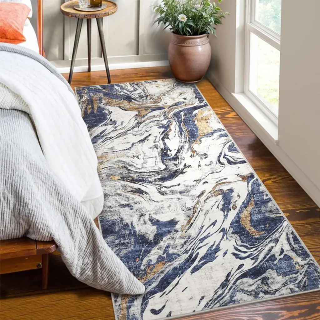 2X6 Washable Area Rug For Living Room Bedroom, Modern Abstract Non-slip Rugs, Low Pile Soft Stain Resistant Carpet For Dining Room, Office, Blue