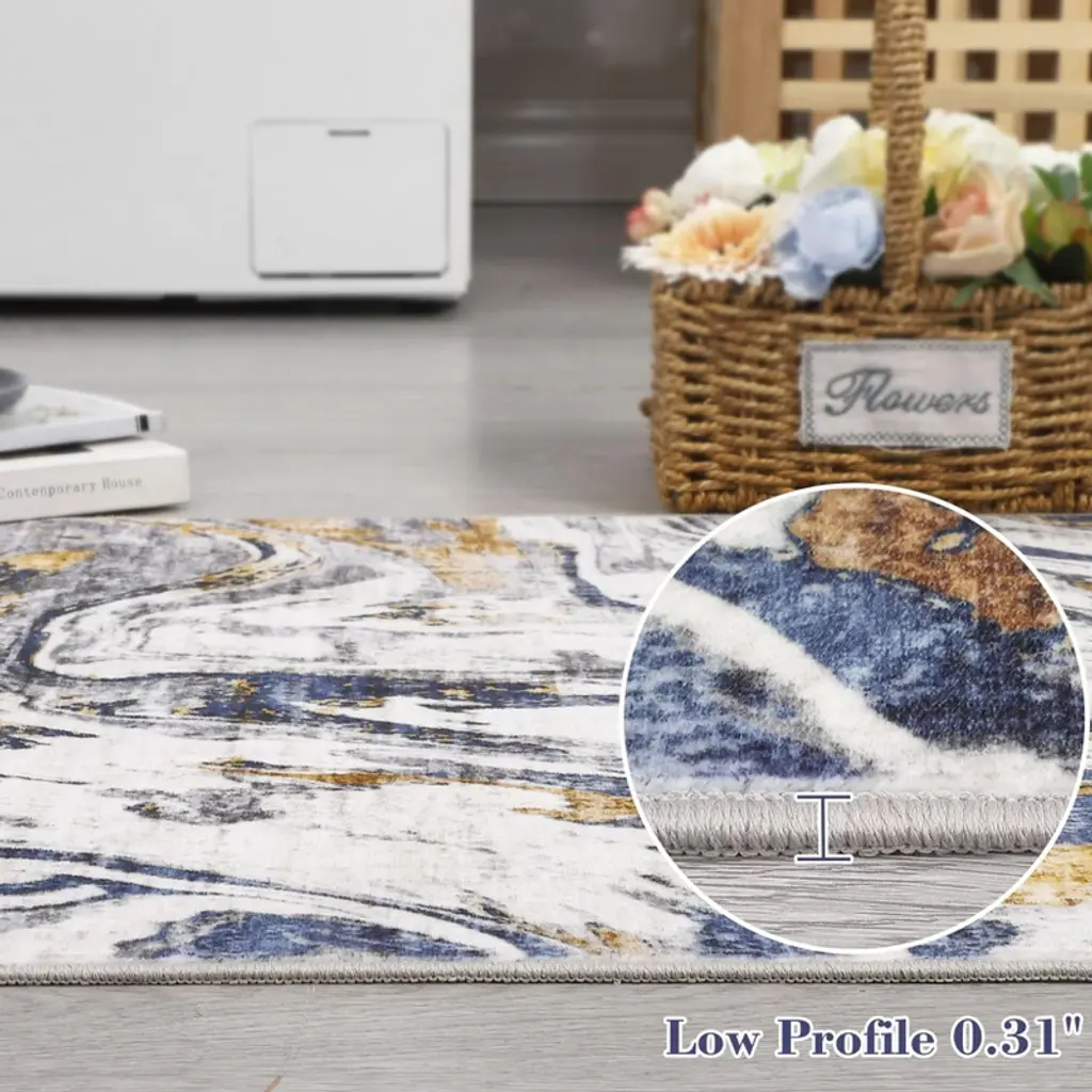 Specifications: Size: 2x6, 5x7, 8x10, 9x12,10x13 Color: Blue/Gray/Brown Material: Polyester, Thermoplastic Rubber, Faux Wool Pile Height: Low Pile Application: Bedroom/Living Room/Dining Room/Hallway/Office Highlights at a Glance: Modern abstract design for stylish decor Luxurious comfort underfoot Sturdy and long-lasting materials Low-pile for practical use Non-slip backing for safety Easy to clean and maintain Enhance your living space with the modern abstract area rug, designed to blend style and comfort while elevating any room's ambiance. Note: Avoid using bleach to maintain the rug's color and texture. The color may appear different depending on the lighting conditions. When area rug arrives, there may be temporary creases, you can roll the washable rug in the opposite direction and lay it flat on the floor while applying pressure to the carpet, the creases will disappear completely in a few days.