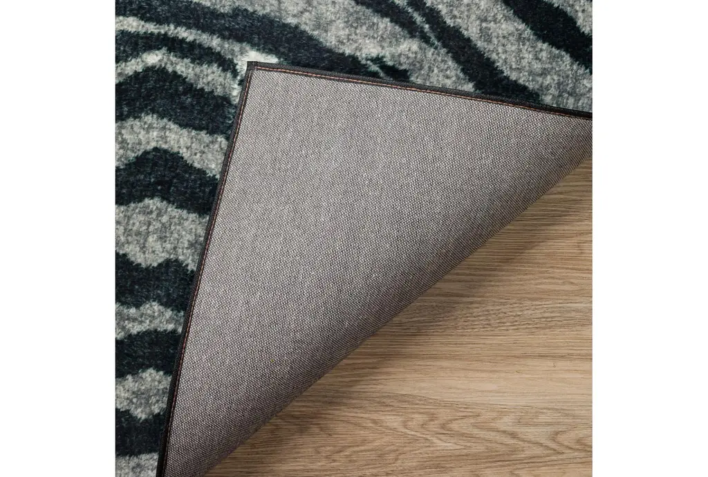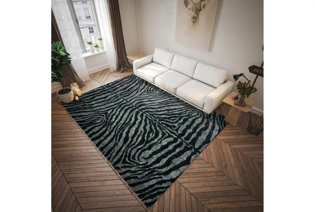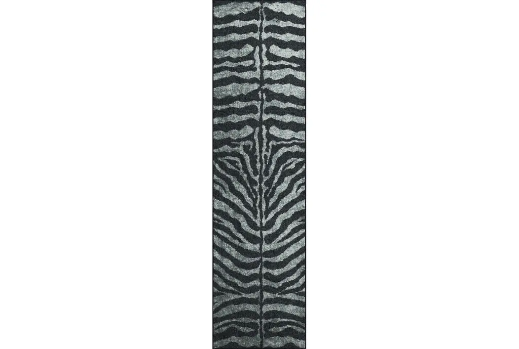 2'x7'6" Runner Rug-Modern Plush Faux Fur Zebra Print Black | Rectangle | Shag