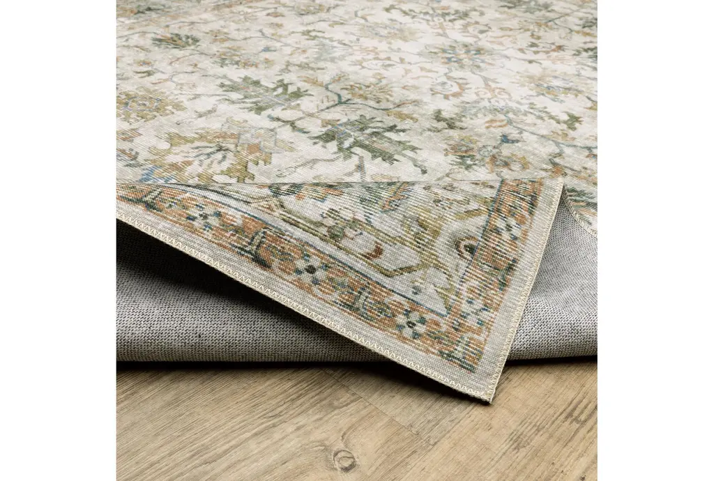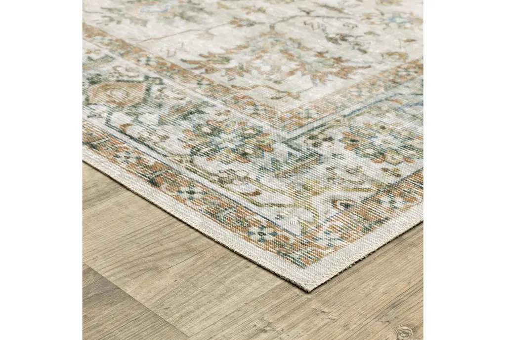 Enhance your indoor space with the Shem Creek Machine Washable Traditional Runner Rug. This 2' x 8' rectangle rug features a beautiful traditional design in taupe with an ivory and multi-color palette. Perfect for any small area, it offers both style and functionality.