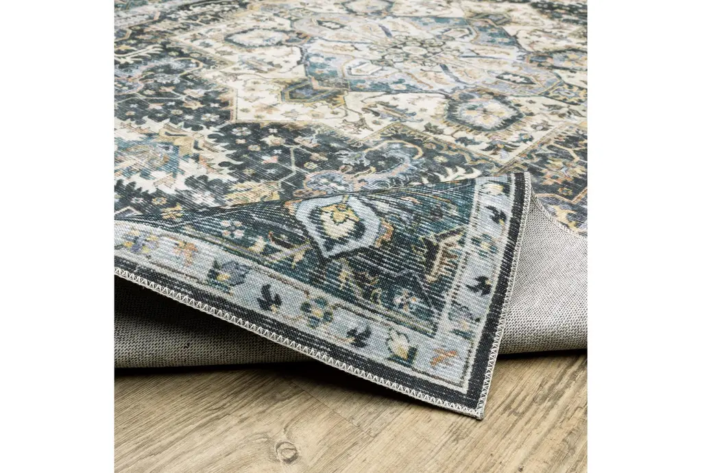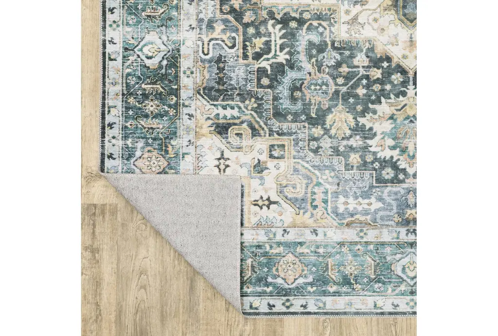 2'x8' Runner Rug-Shem Creek Traditional Machine Washable Medallion Blue | Non Slip | Uv Resistant | Performance | Rectangle | Oriental