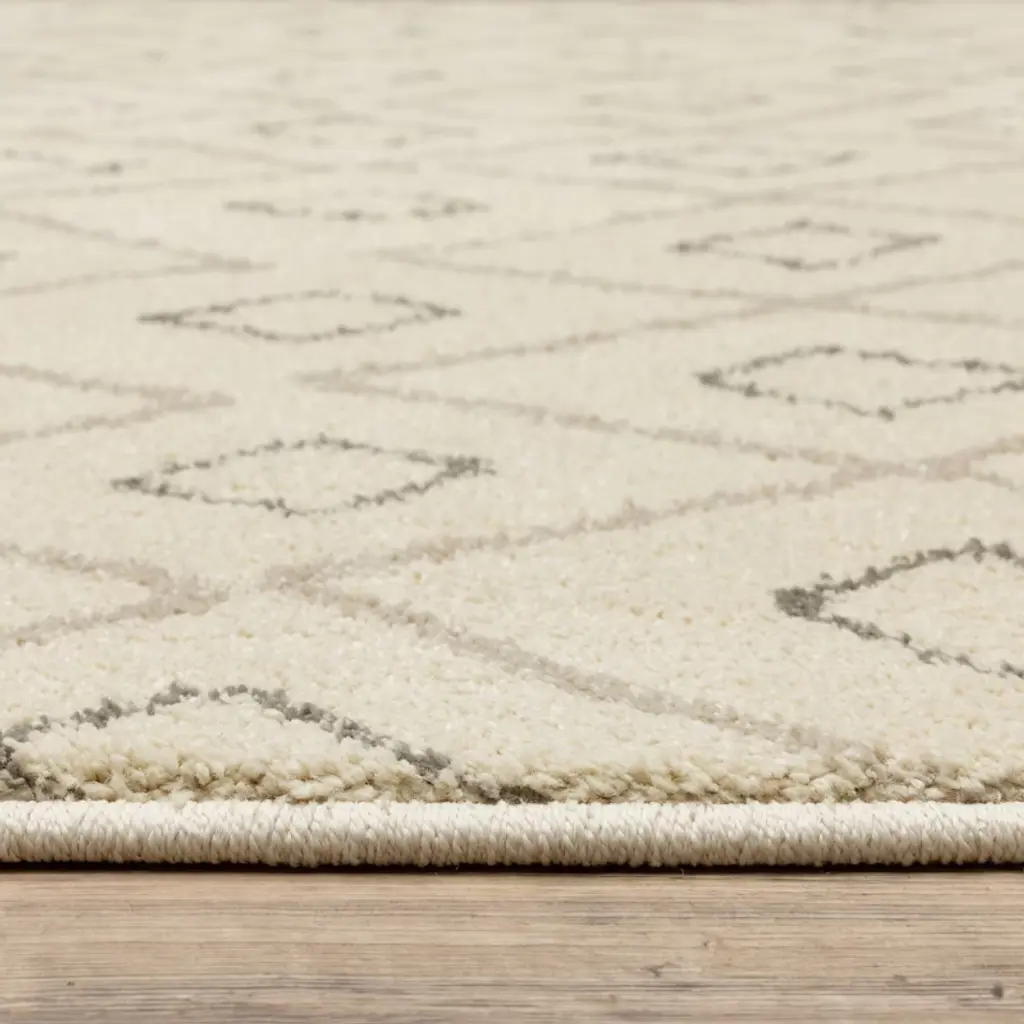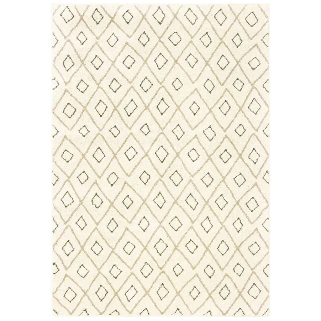 Experience a continual sense of calmness and fluidity in your space with this rectangular area rug. Displaying a striking ivory and sand geometric lattice pattern, this polypropylene rug features a high pile that stands up to daily moderate traffic. To maintain the look and feel of your rug, blot spills immediately with a clean white cloth, vacuum regularly and spot clean using a mild soap made for the specific rug fiber. Professionally clean occasionally or when heavily soiled. A rug pad is recommended.