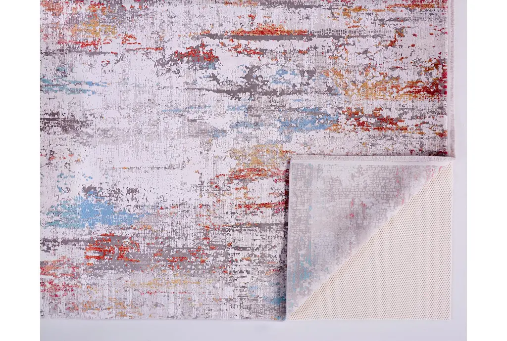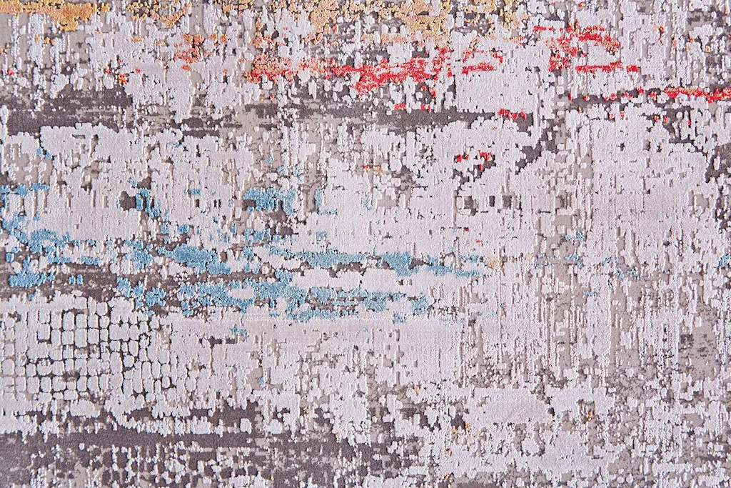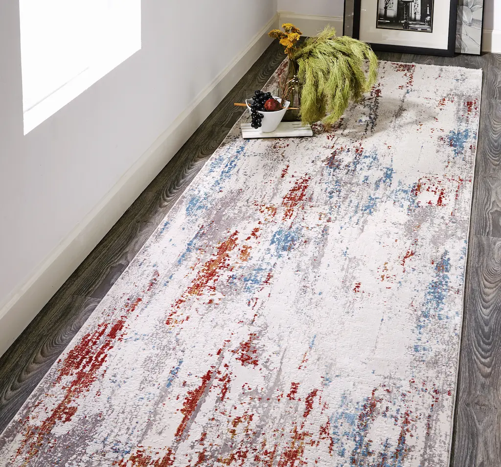 3'1"x5' Fiber Rug-Faux Bois Ivory/red | Low Pile | Abstract | Rectangle