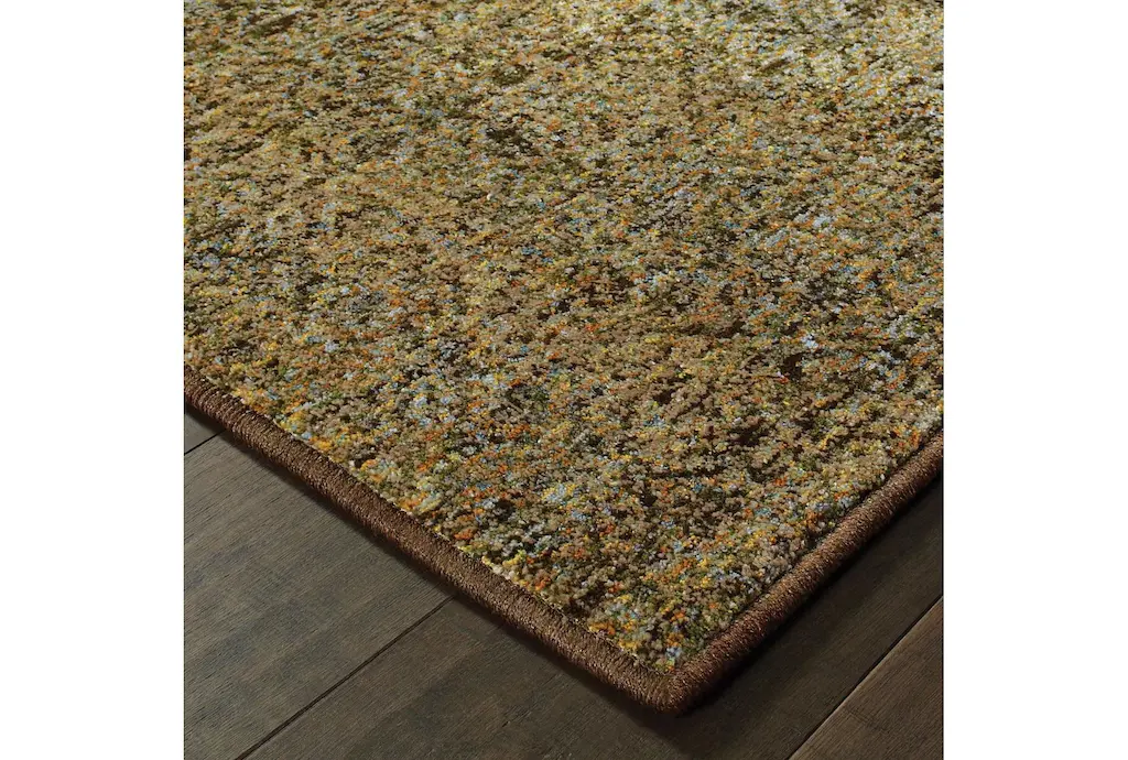 Enhance your indoor space with the 3'3"x5'2" Fiber Rug featuring the Maralina Pattern in Amber. This geometric rectangle rug in a gold hue adds a touch of casual style to any room. Made from a durable blend of nylon and polypropylene, it is designed to withstand everyday use.