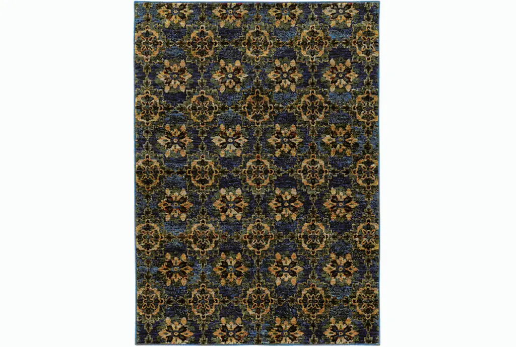Enhance your indoor space with the Safaa Traditional Botanical Tile Fiber Rug. This 3'3"x5'2" rug features a stunning indigo color with intricate blue and gold patterns, adding a touch of sophistication to any room. Made from durable nylon and polypropylene, this rectangle-shaped rug is perfect for creating a cozy atmosphere in your home.