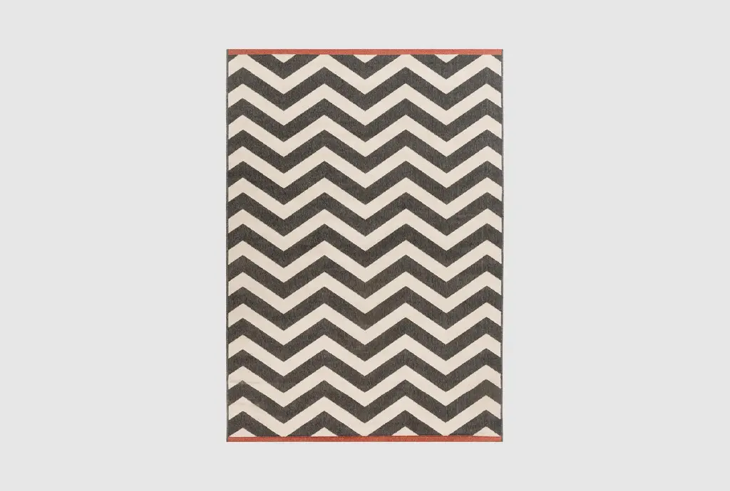 Add a touch of contemporary style to your home with the Tendu Chevron Black Rug by Surya. This low pile, rectangular rug features a striking black and beige chevron pattern, making it a perfect accent piece for any indoor space. Made of 100% polypropylene, it is durable and easy to maintain.