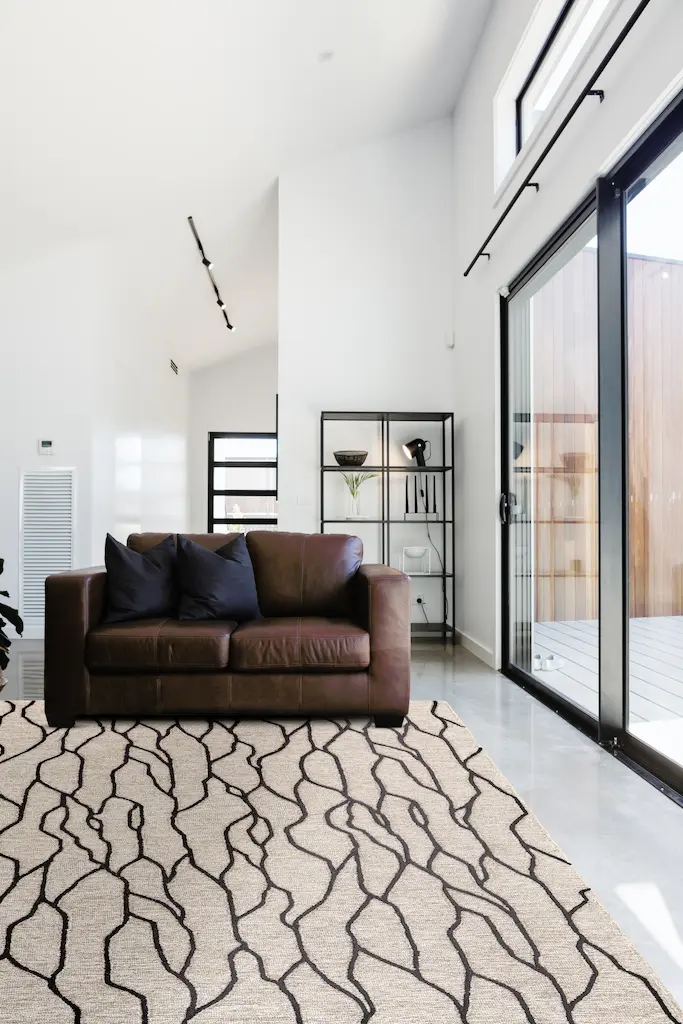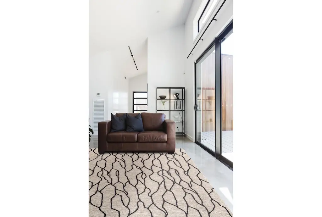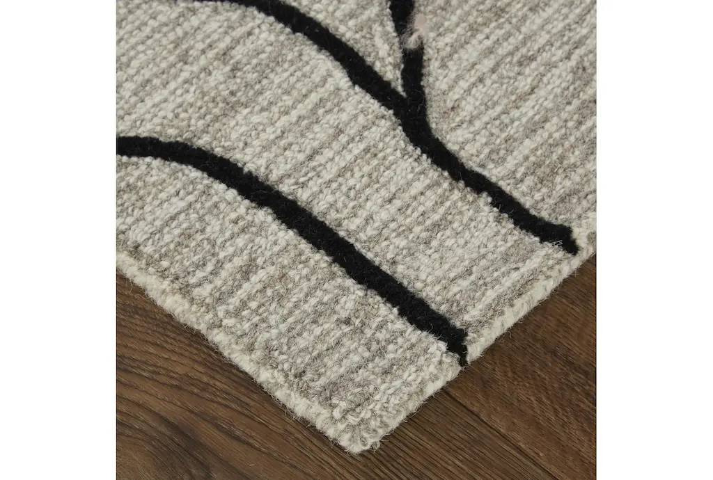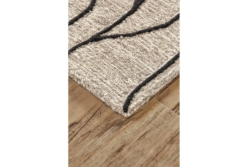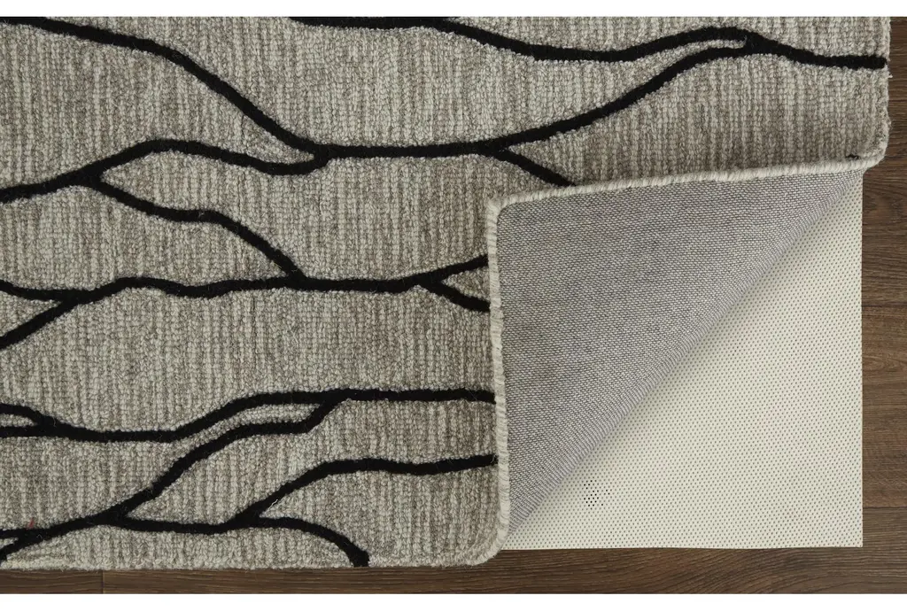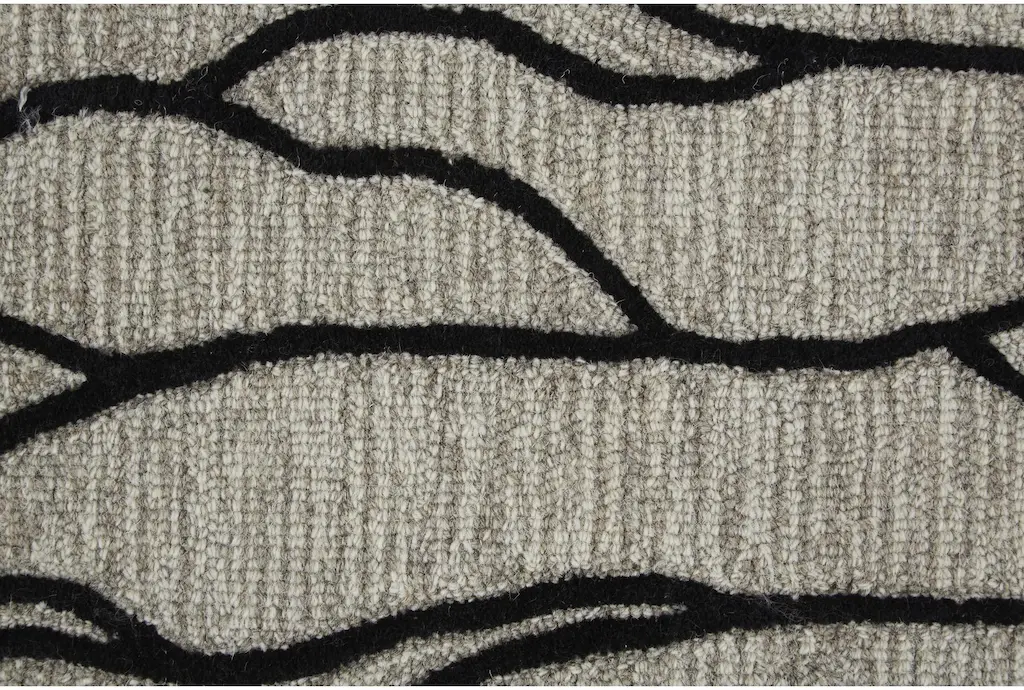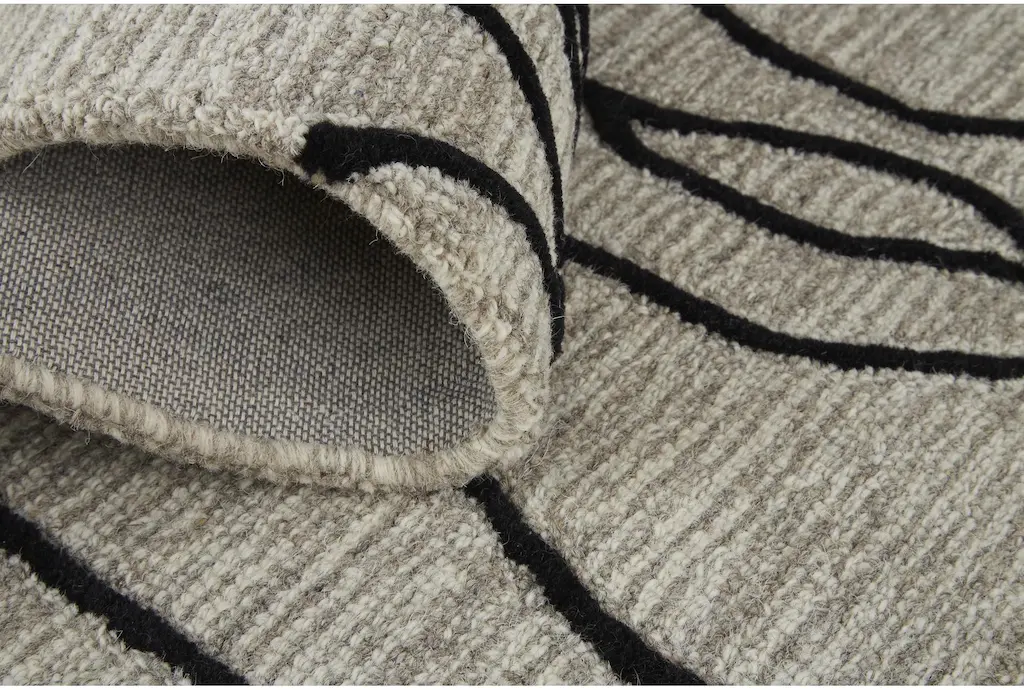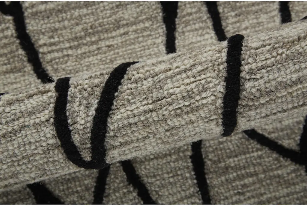 3'5"x5'5" Rectangle Cotton Wool Rug-Tribal Waves Black/taupe | Indoor | Low Pile