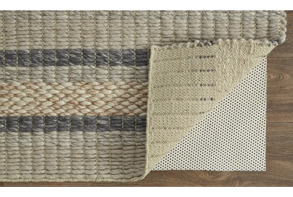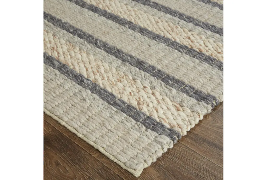 3'5"x5'5" Rectangle Rug | Natural Textured Handwoven Wool Stripe | Grid | Indoor | Low Pile